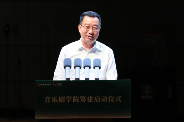 在浙音音乐剧学院筹建启动仪式上,中国文联原党组成员、书记处书记张宏致辞,他说,浙音音乐剧学院及音乐剧中心的成立是一个创举,它为中国音乐剧搭建了一个国际化平台,未来,希望浙音音乐剧学院整合学院与社会资源,打造出优秀剧目,让中国故事在音乐剧舞台获得国际回响。