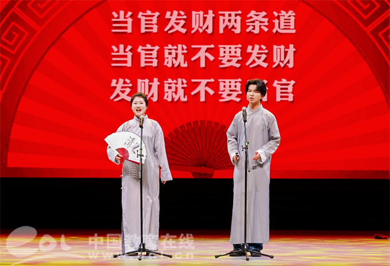 由浙江工业大学带来的对口白话《青年!清廉!》,以幽默风趣的语言艺术、贴近生活的案例,阐述了“清权”“清交”“清风”“清心”的深刻内涵。