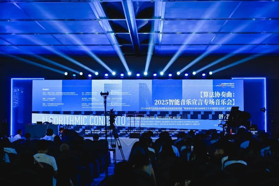 数贸会现场,“算法协奏曲——2025智能音乐宣言”专场音乐会也精彩举办,集中展演数字音乐智能处理技术文化和旅游部重点实验室的阶段性成果。9位来自国内外的中青年作曲家集中呈现了他们的原创精品力作,其中多数为世界首演或亚洲首演,展示了智能音乐时代人机共创、人机共生、人机共演的前沿探索。