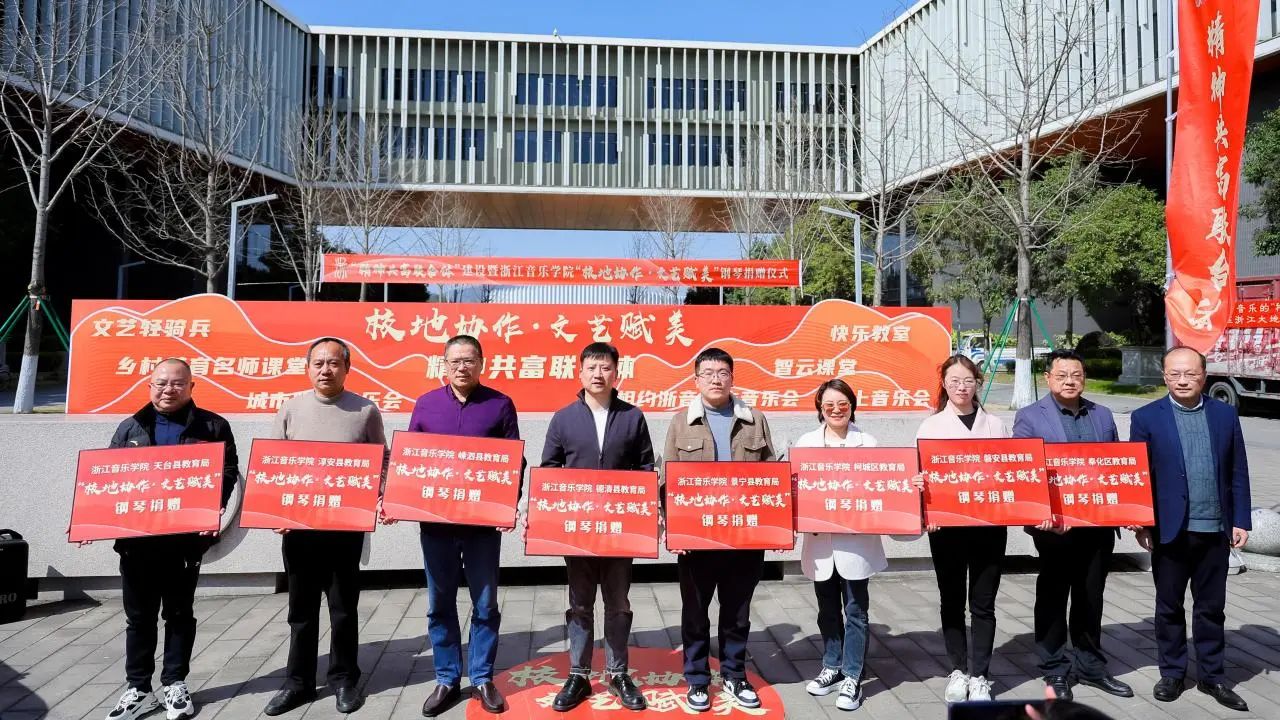 坚持红色领航,组织联建奠定共富乐章主基调。学校整合人力、物力、智力资源,梳理形成共建单位需求清单、学校资源清单和文艺帮扶任务清单3张清单,因村施策开展精准服务。校领导每年带队奔赴共建单位实地调研、走访慰问、座谈交流,筹措资金用于结对村低收入农户增收致富和困难补助,捐赠乐器用于乡村“快乐音乐教室”建设。在共建单位同步挂牌成立“党员文化志愿服务基地”“艺术实践基地”“社科赋能实践基地”“大学生社会实践基地”等,使联村共建融入师生艺术实践和日常教学。