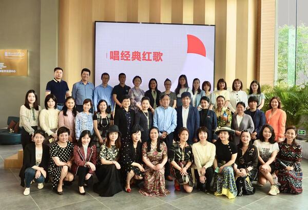 省政协委员、学院青年教师郑培钦教唱《唱支山歌给党听》《走进新时代》《我和我的祖国》三首红色经典曲目。参加活动的艺术家、企业家们分组进行了学习和交流,大家在激情澎湃的旋律和抑扬顿挫的歌声中,表达对党、对祖国赤诚的热爱,共同传承红色基因、赓续精神血脉。