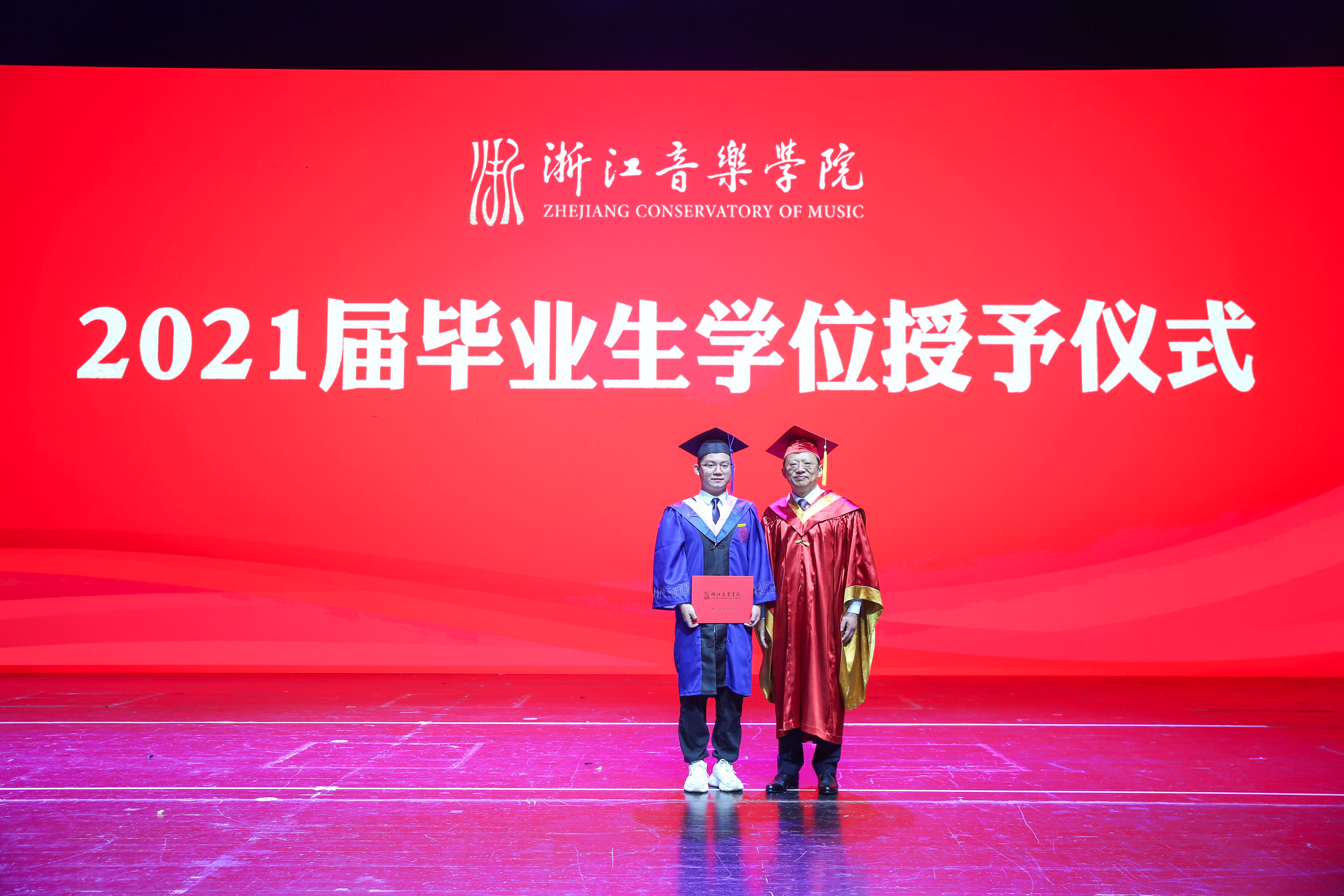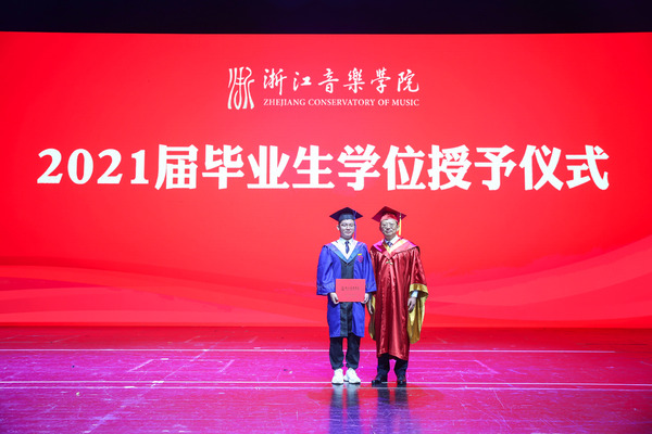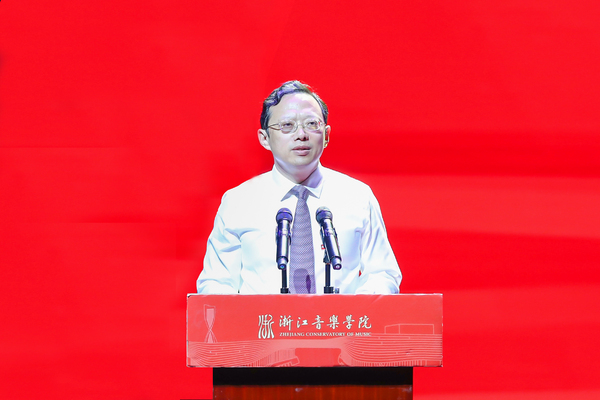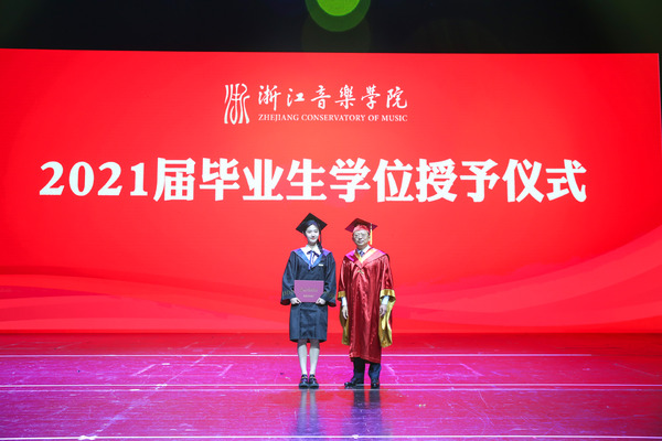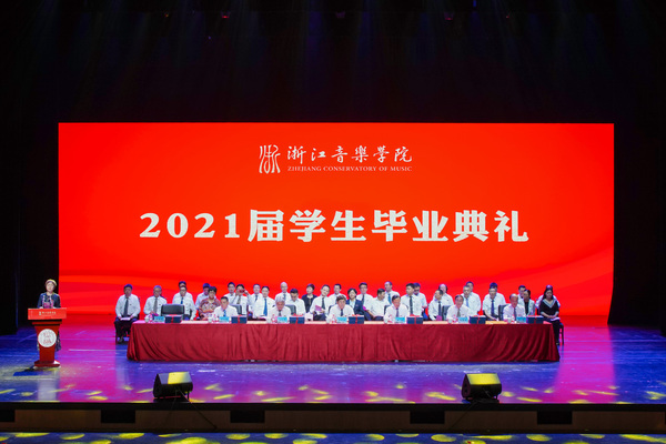 院长王瑞在毕业典礼上,作了题为“用理想和信仰坚定信心开辟未来”的致辞。他表示,2021届毕业生注定是不平凡的一届。2021年,既是中国共产党成立100周年,也是全球新冠疫情肆虐的一年。人类社会百年不遇的重大疫情,为毕业生们的大学生涯标注了特殊的时代印记。2021届的毕业生们砥砺于磨难、成长于实践,交出了一份优秀答卷,在浙音的史册上镌刻下最闪亮最耀眼的印记;学院也在与同学们结伴而行的时间里,以改革创新的崭新姿态实现了跨越式发展,在各方面取得了令人瞩目的成果,现代大学机制日趋健全,学科综合实力与核心竞争力显著增强,日益成为文化浙江和全国文化艺术繁荣的靓丽名片,为浙江“重要窗口”和“共同富裕示范区”建设做出了浙音贡献。