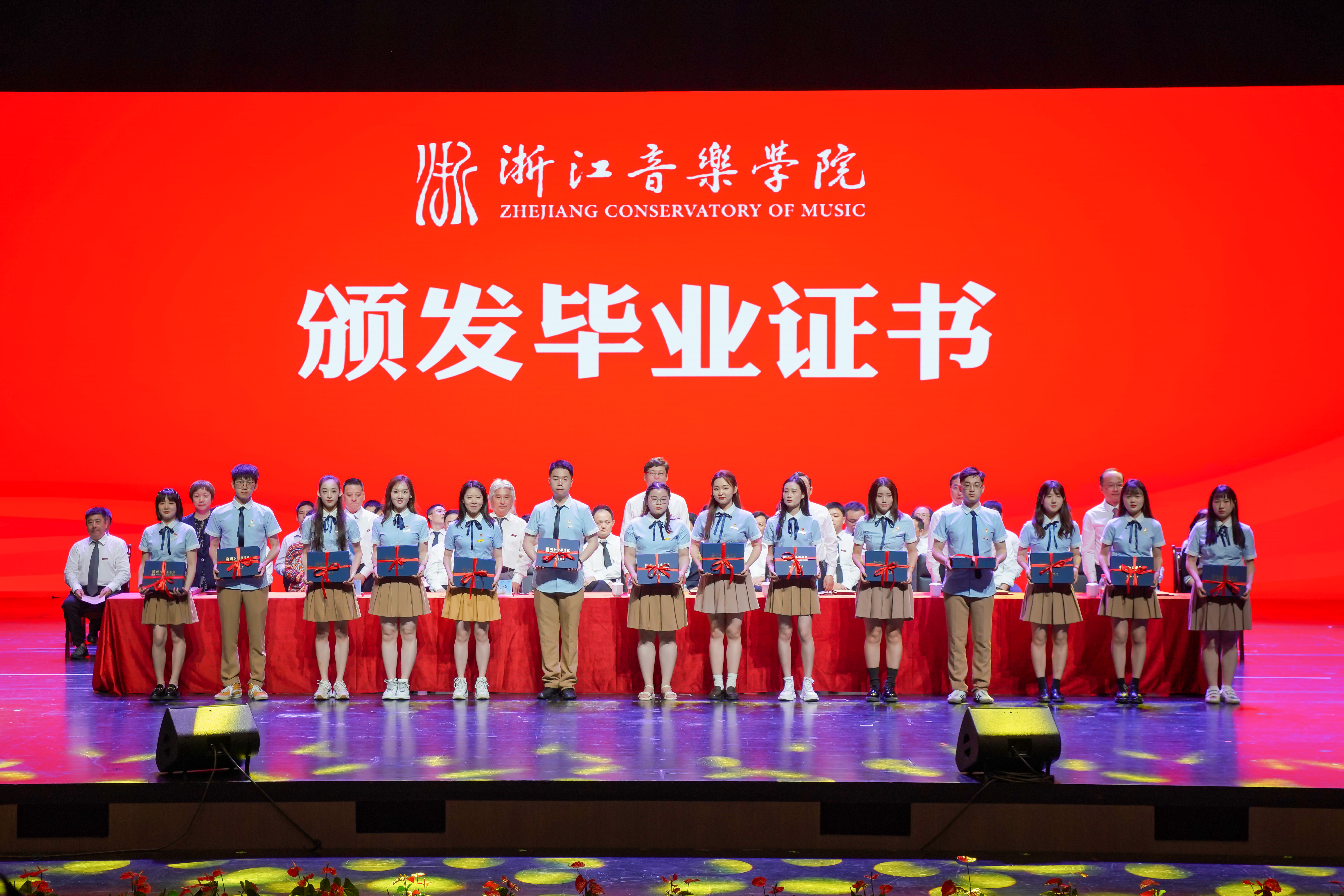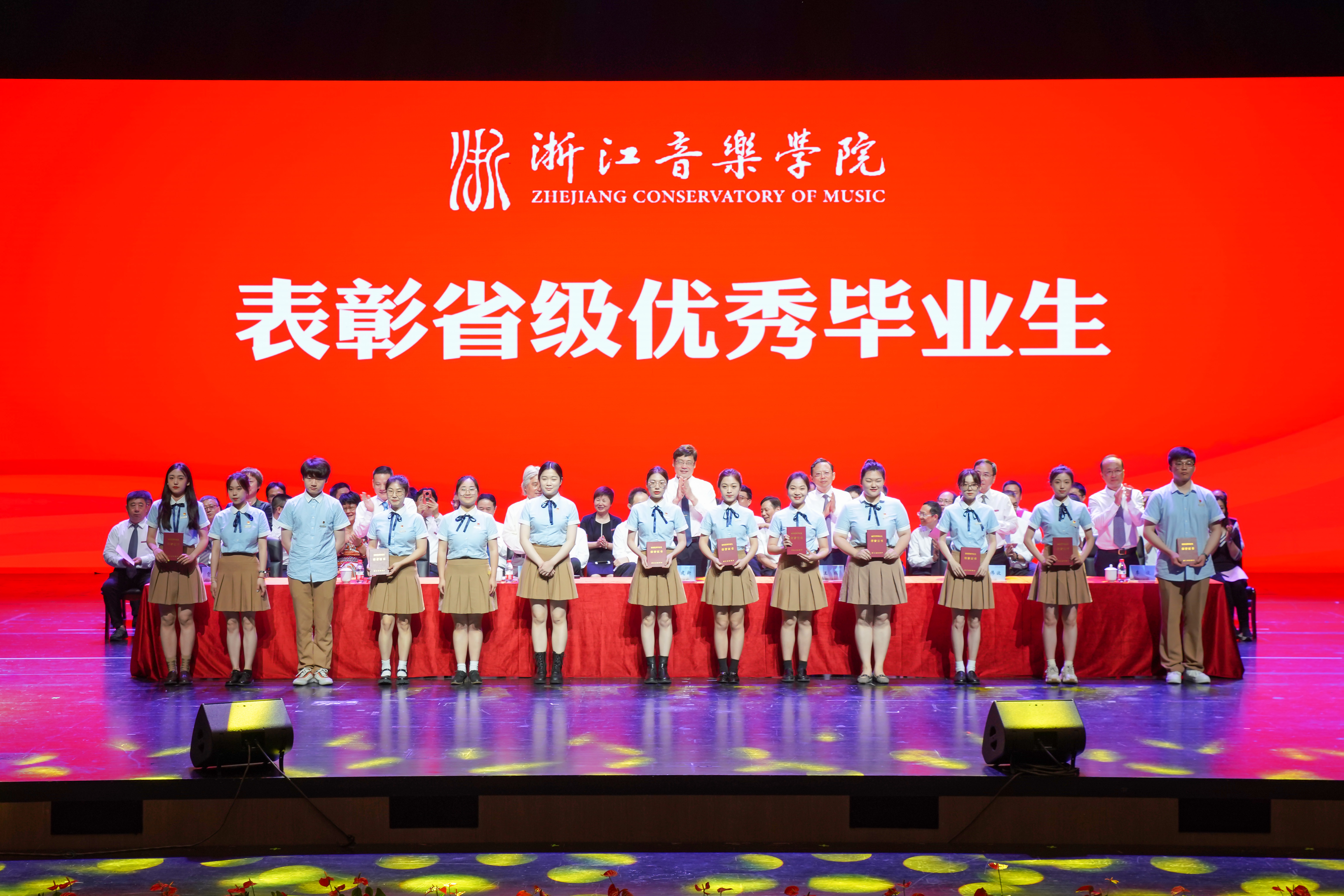 院领导为毕业生代表及“2021届浙江省普通高等学校优秀毕业生”颁发证书。副院长杨九华宣读了2021届毕业生毕业的决定。
