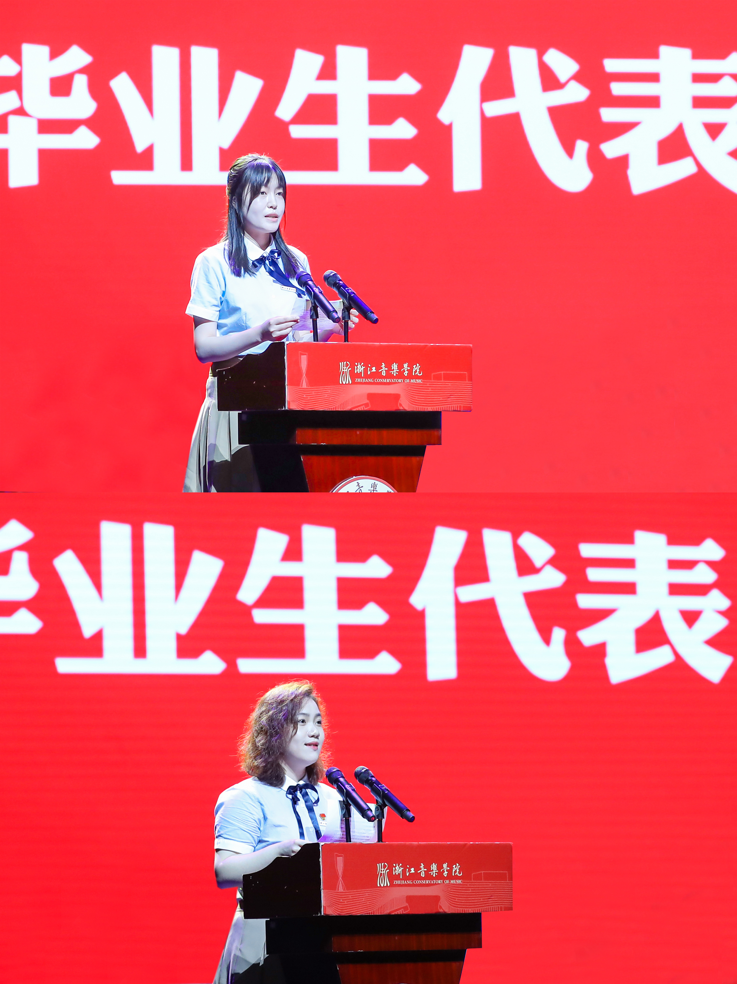 研究生、本科生毕业生代表和教师代表分别上台发言。