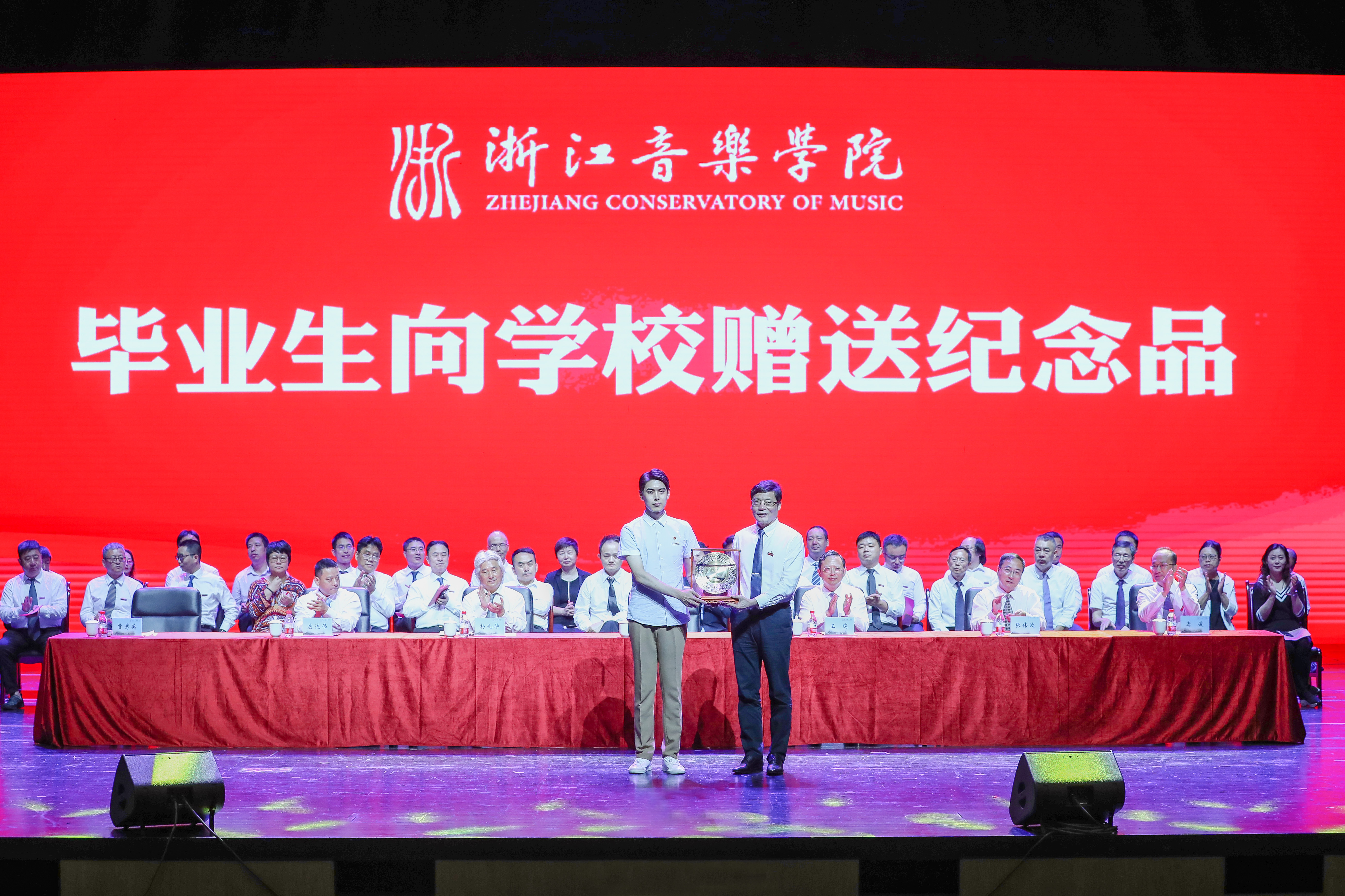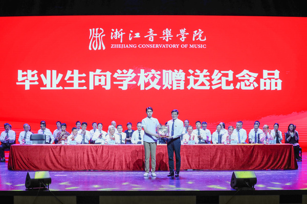 党委书记胡建新代表学院接受了毕业生为学院赠送的纪念品。