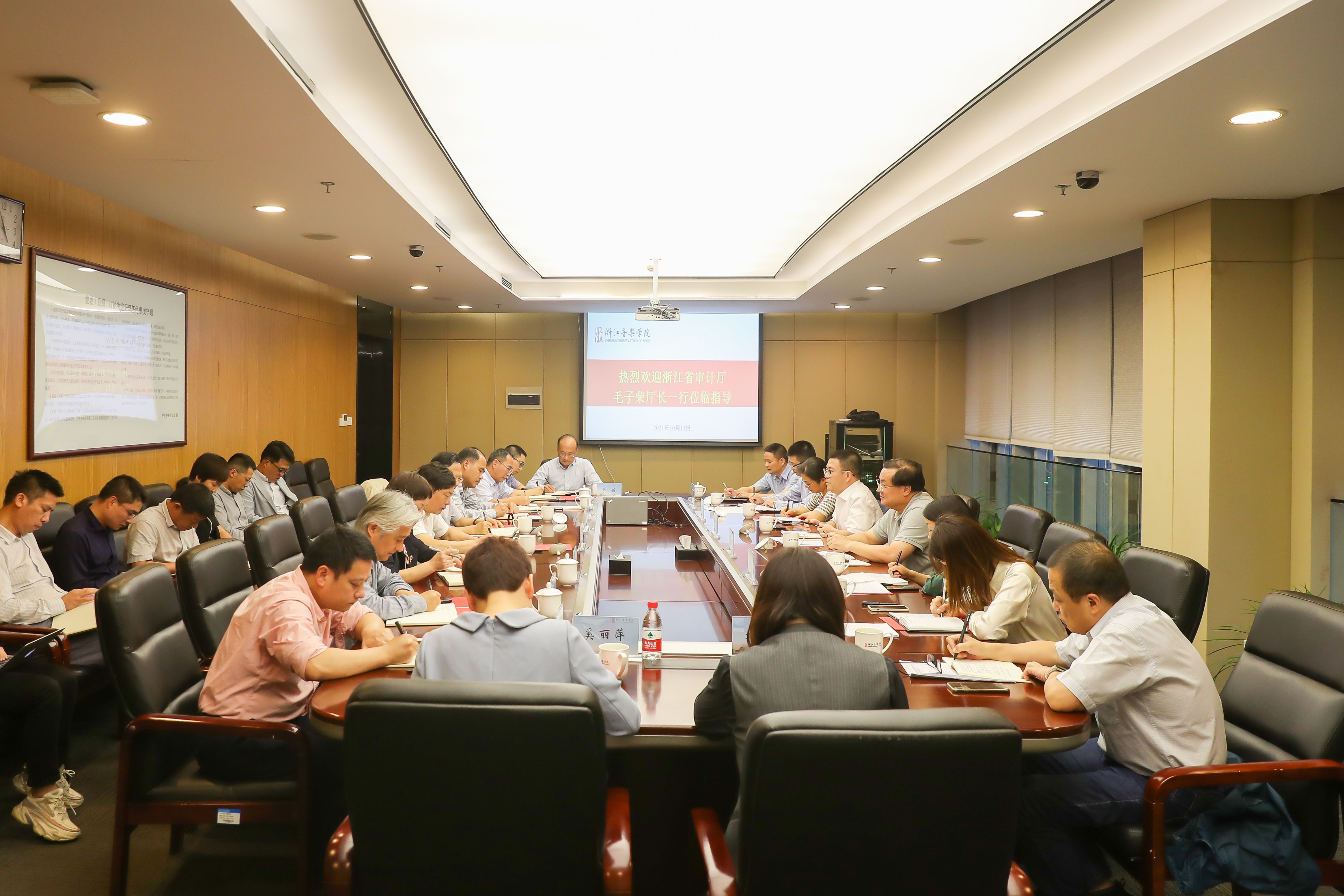 为更好推进学院主要领导任期经济责任审计工作,10月11日下午,浙江省审计厅党组书记、厅长毛子荣,驻省财政厅纪检组组长徐首红,厅党组成员、省经济责任审计工作联席会议办公室主任张红英,以及省审计厅、驻省财政厅纪检组有关负责人一行来学院开展调研座谈。院党政领导班子成员胡建新、王瑞、贾秀英、王均寅、杨九华、张伟波、应达伟、汪洋、奚丽萍、李俊陪同并出席座谈会,省审计厅经济责任审计二处审计组成员、院审计工作领导小组办公室成员参加。
