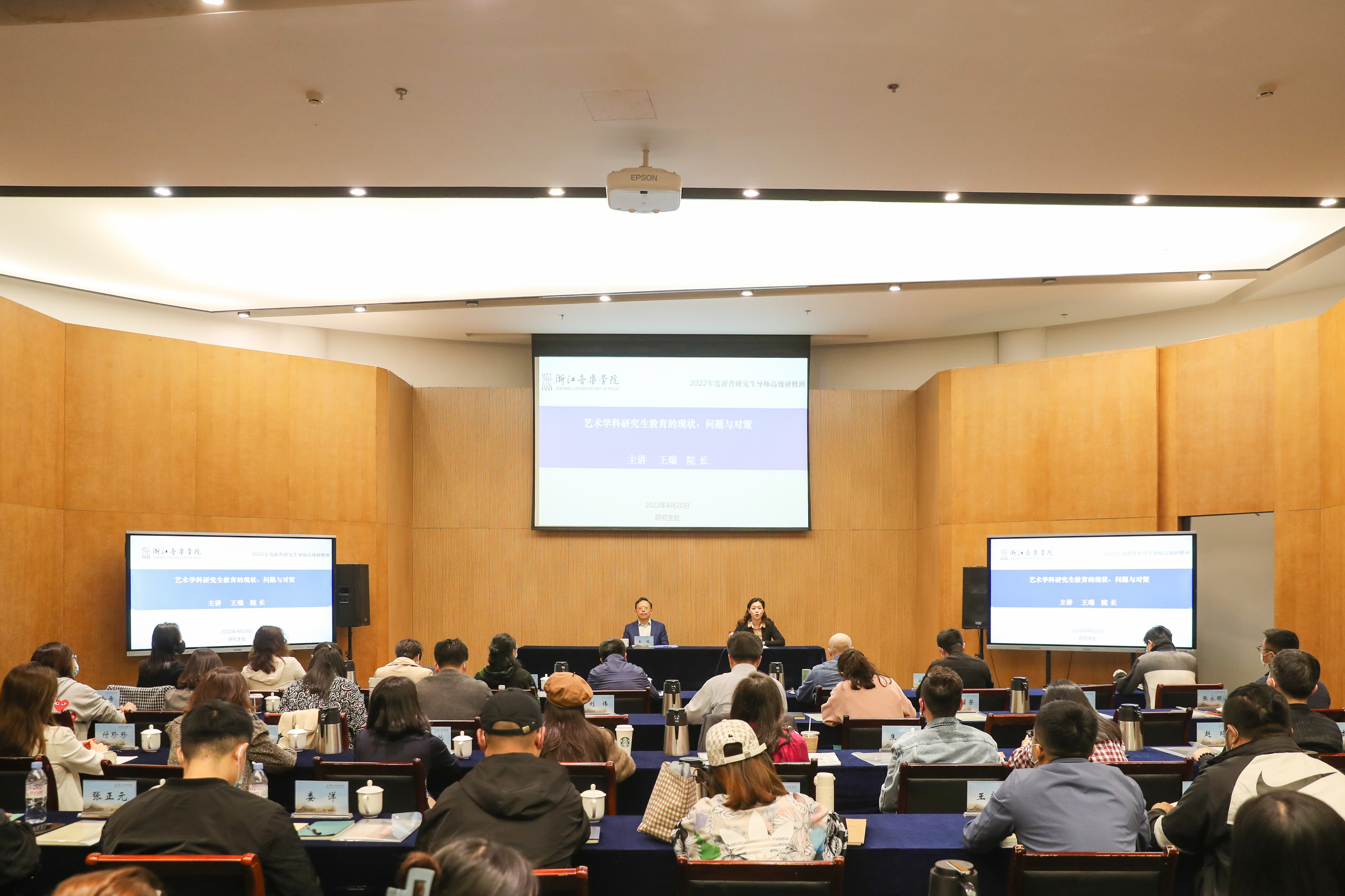 院长王瑞以“艺术学科研究生教育的现状、问题与对策”为题,带来新晋研究生导师高级研修班的首场专家报告。他结合学院实际,从加强思想政治教育、深入推进学科专业调整、完善人才培养体系、提升导师队伍水平、严格质量管理等方面,全面详细解读了教育部、国家发展改革委、财政部《关于加快新时代研究生教育改革发展的意见》。他指出,研究生教育如何成为培养人才的高峰、聚集人才的高地、创新创造的策源地、服务发展的新引擎,是摆在新时代艺术学科研究生教育面前的重要课题。他要求新晋导师准确把握研究生教育的时代定位,遵循高层次人才培养规律,密切结合国家发展和民族复兴的现实需求,深化创新国际交流合作,不断提高自身专业素养;要求研究生管理相关职能部门严格加强质量管理,完善评价体系,引导研究生教育分类发展、特色发展和高质量发展,为建设具有浙音特色的高水平一流研究生教育强校而踔厉奋发。