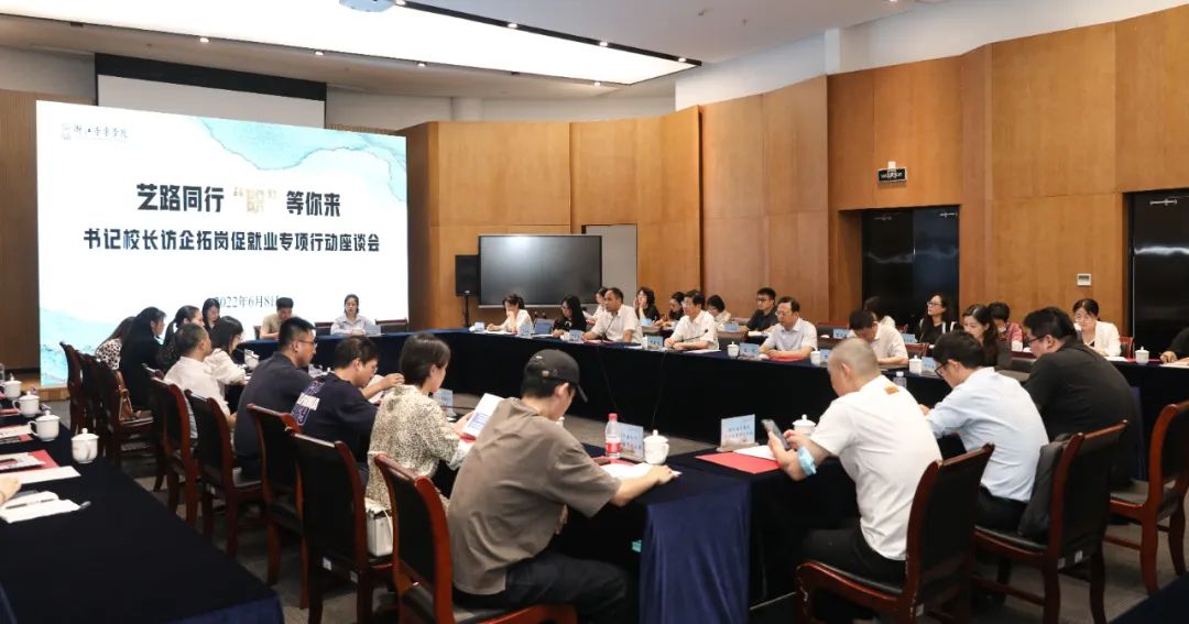 为进一步贯彻落实党中央、国务院关于高校毕业生就业工作的决策部署,全面拓宽就业渠道,有效搭建就业平台,切实做好毕业生就业服务工作,6月8日,学院开展书记校长访企拓岗促就业专项行动座谈会暨2022届毕业生招聘会。学院党委书记干武东、院长王瑞、副书记王均寅,以及省委宣传部文化发展改革处、省文化产业促进会相关负责人,企业代表,学院办公室、学生工作部、研究生工作部、各系(院)负责人参加。会议由王均寅主持。
