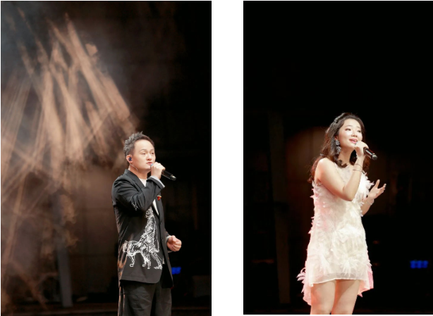 当晚,多位观众耳熟能详、来自流行音乐系的“中国好声音”学员和优秀教师等悉数登场,其中,包括2021级研究生、2016年中国好声音那英组4强学员叶炫清,2018级本科生、2019年中国好声音李荣浩组6强学员李凡一,2019级本科生、中国好声音2021年度学员董书含等,以及内地歌手、音乐制作人、流行音乐系副主任王滔,流行音乐系教师、2018“新松计划”浙江省青年歌手大赛流行唱法A组兰花奖金奖得主张萌,流行音乐系教研室副主任、流行声乐教师、文华奖优秀奖得主张正元,流行声乐教师、浙江省高校教学案例一等奖高艺璇。晚会群星璀璨,精彩集萃,为杭城市民带来一场高质量、高级别的视听盛宴。