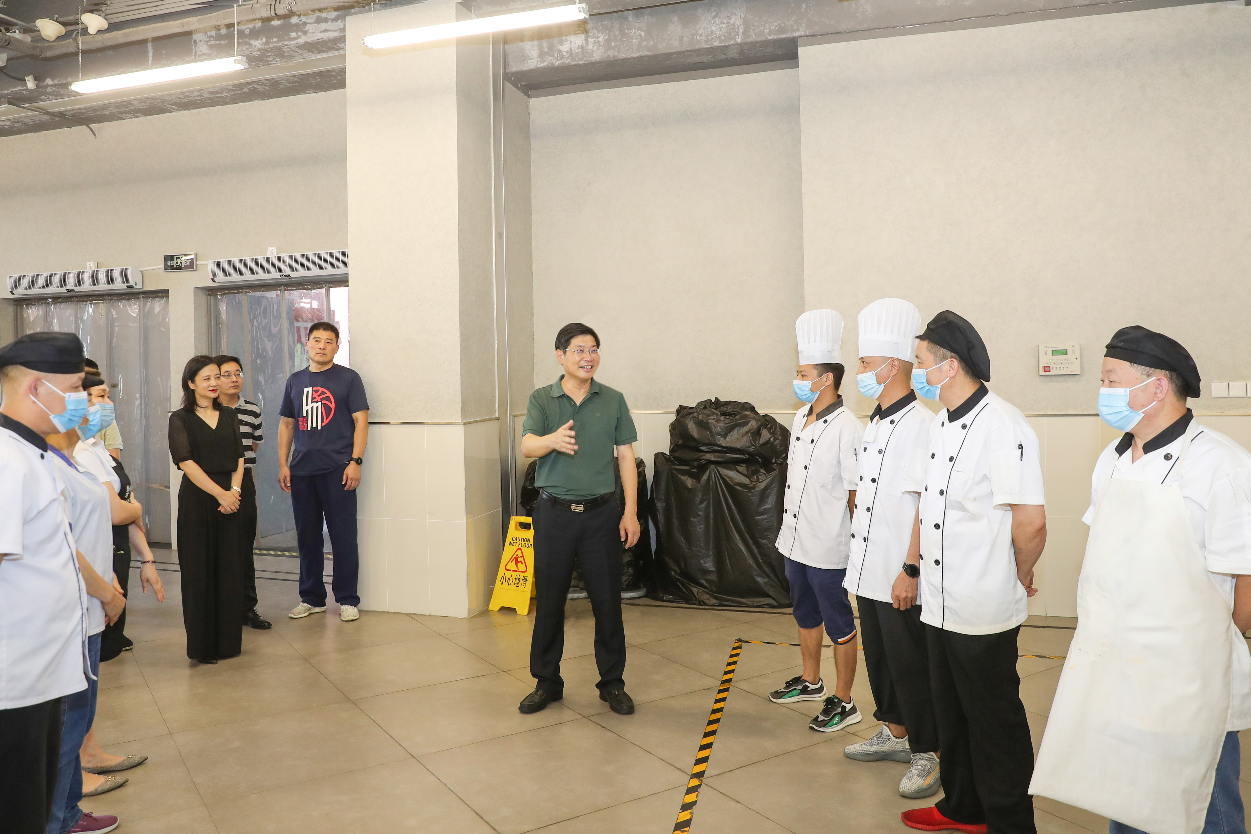 学院领导一行先后来到国际交流中心、大剧院、各安保岗亭、南区食堂,每到一处都与员工亲切握手交谈,了解暑期各项服务和安保工作的开展情况。干武东向一线教职工顶酷暑、战高温,仍然坚守工作岗位表示感谢。他指出,学院的建设发展离不开各岗位教职工的辛勤付出,暑假仍有大批教职工不辞辛苦、不畏酷暑奋战在工作一线,体现了大家坚守岗位、尽职尽责的奉献精神和凝心聚力、砥砺奋进的拼搏精神。他叮嘱大家注意防暑降温,并希望大家再接再厉、全力以赴做好暑期各项工作,进一步利用暑期空档拓展业务、加强学习。