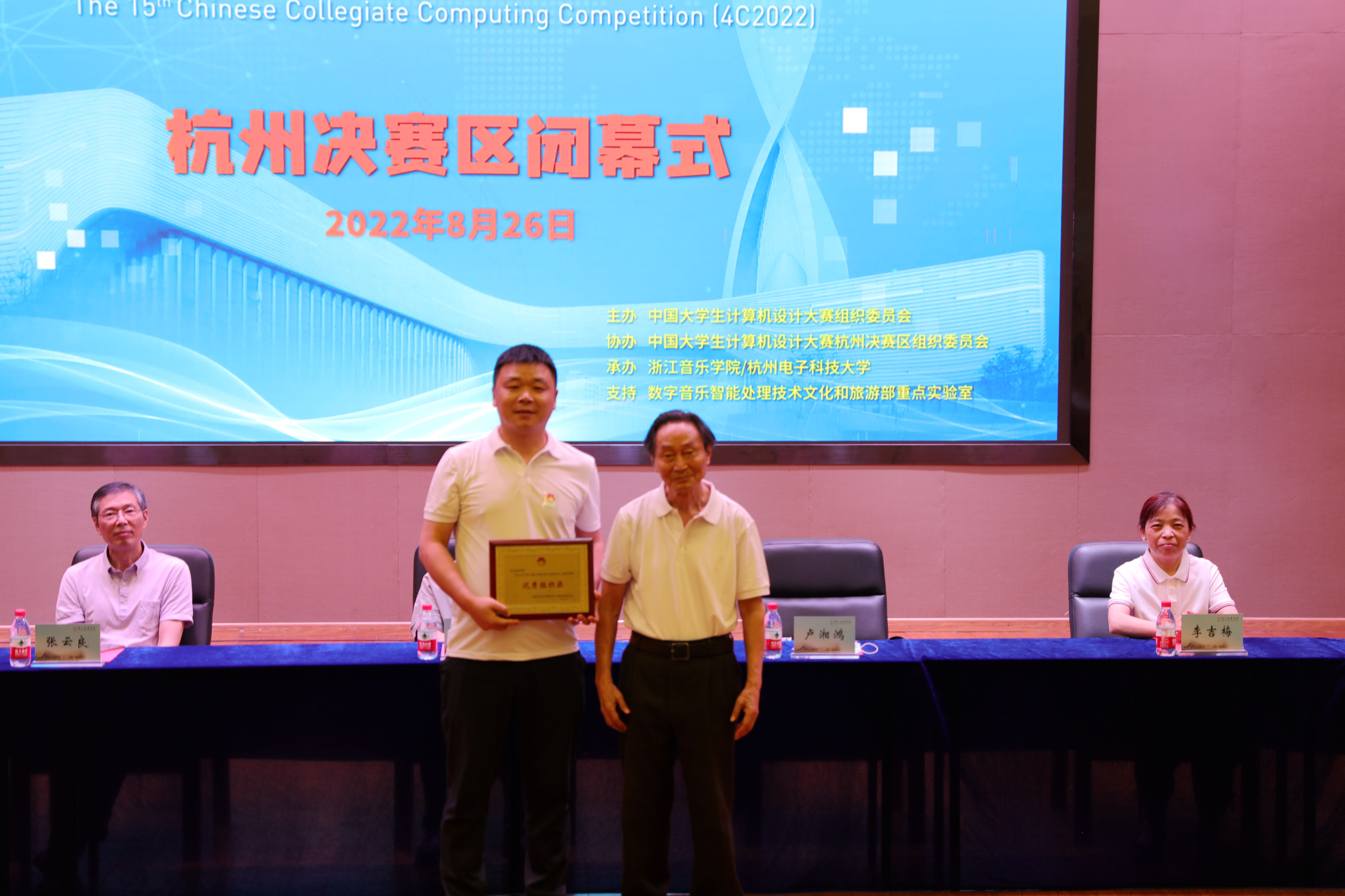 大赛组委会名誉顾问、中国科学院院士、中国科学技术大学陈国良教授,中国高等教育学会事业发展部主任吴英策,大赛组委会主任代表、北京语言大学党委副书记魏晖教授,大赛组委会常务副主任、教育部高等学校大学计算机课程教学指导委员会副主任、中国人民大学校长助理杜小勇,杭州电子科技大学副校长李文钧,中国大学生计算机设计大赛组委会顾问、大赛主要创始人之一、北京语言大学卢湘鸿教授以及大赛组委会领导李吉梅、郑骏、张小夫、金莹、周小明、赵慧周、杨勇,承办、协办单位的其他领导以及评委代表和学生代表参加开、闭幕式。院长王瑞、副院长杨九华、张伟波等出席大赛有关活动。
