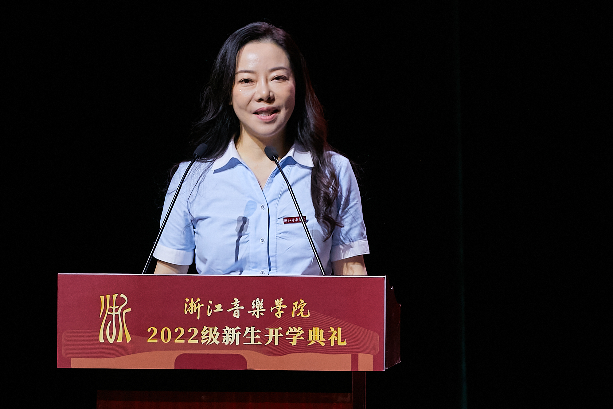 管弦系崔凤兰代表本科新生发言。她动情表达了初入校园的复杂心情和对师长们引导关怀的敬意感谢,并表示,要树立清晰目标并为此坚持不懈,有所为,有所不为,怀着谦虚好学的态度在浙音书写出青春篇章,以优异的专业技能为桥梁,传播好中国故事,用自己的艺术梦想助力“中国梦”的实现。