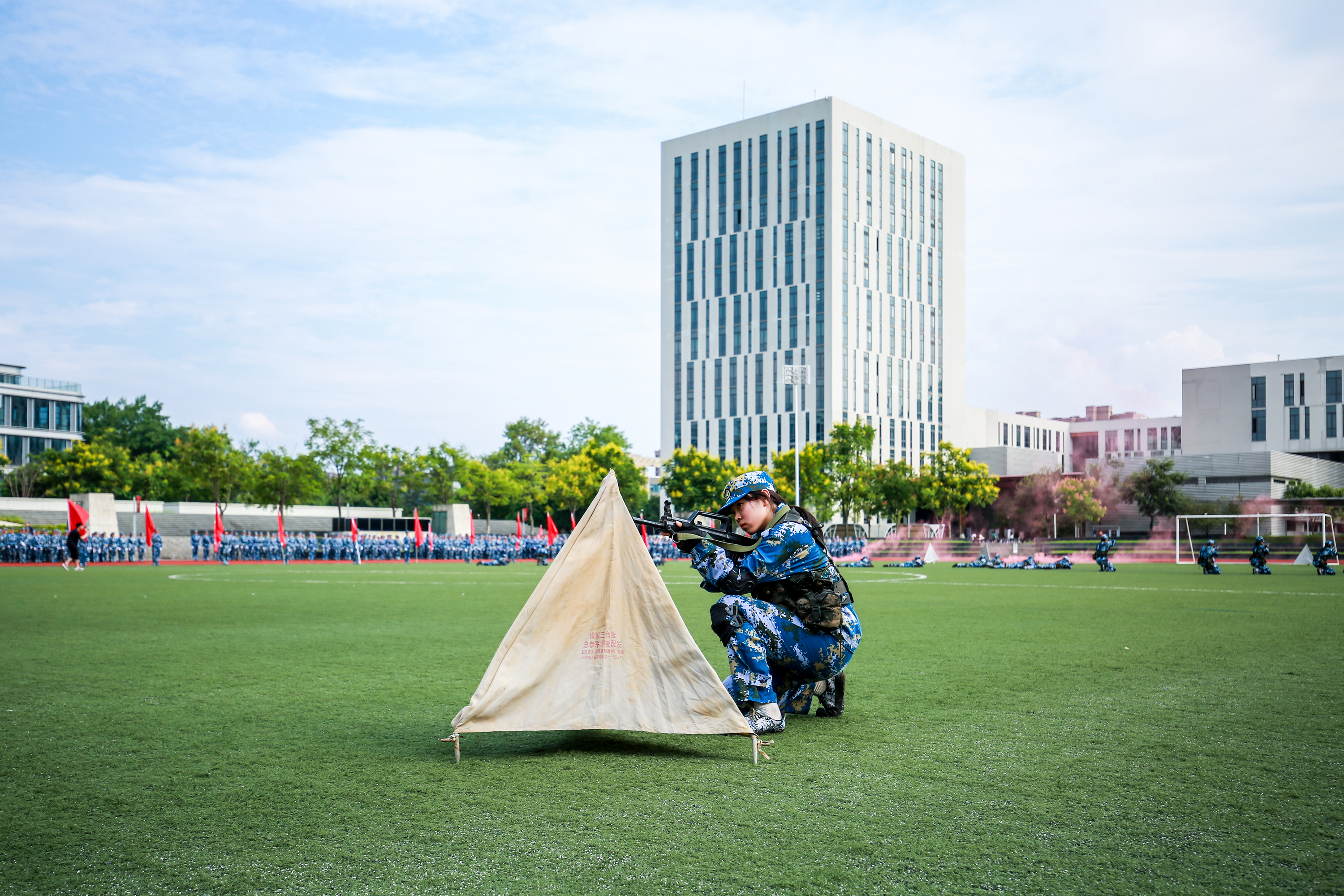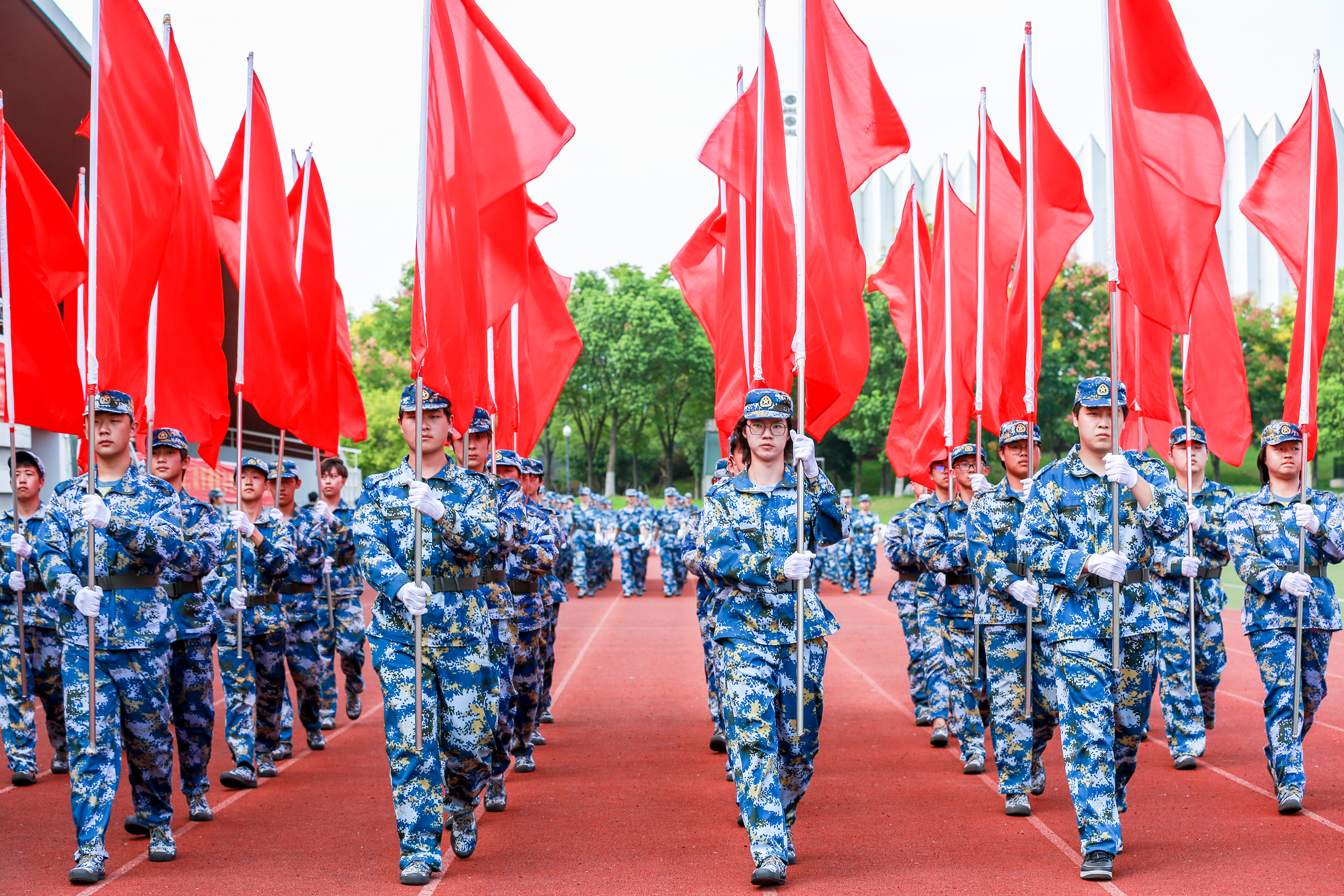 现场,由受训学生组成的红旗方队、军体拳方阵、班排战术表演方阵分别进行了汇报表演。飘扬的红旗、飒爽的英姿、整齐划一的步伐,铿锵有力的口号燃爆全场,充分展现了浙音学子朝气蓬勃、奋发有为精神风貌,赢得与会领导和在场观众的阵阵掌声。