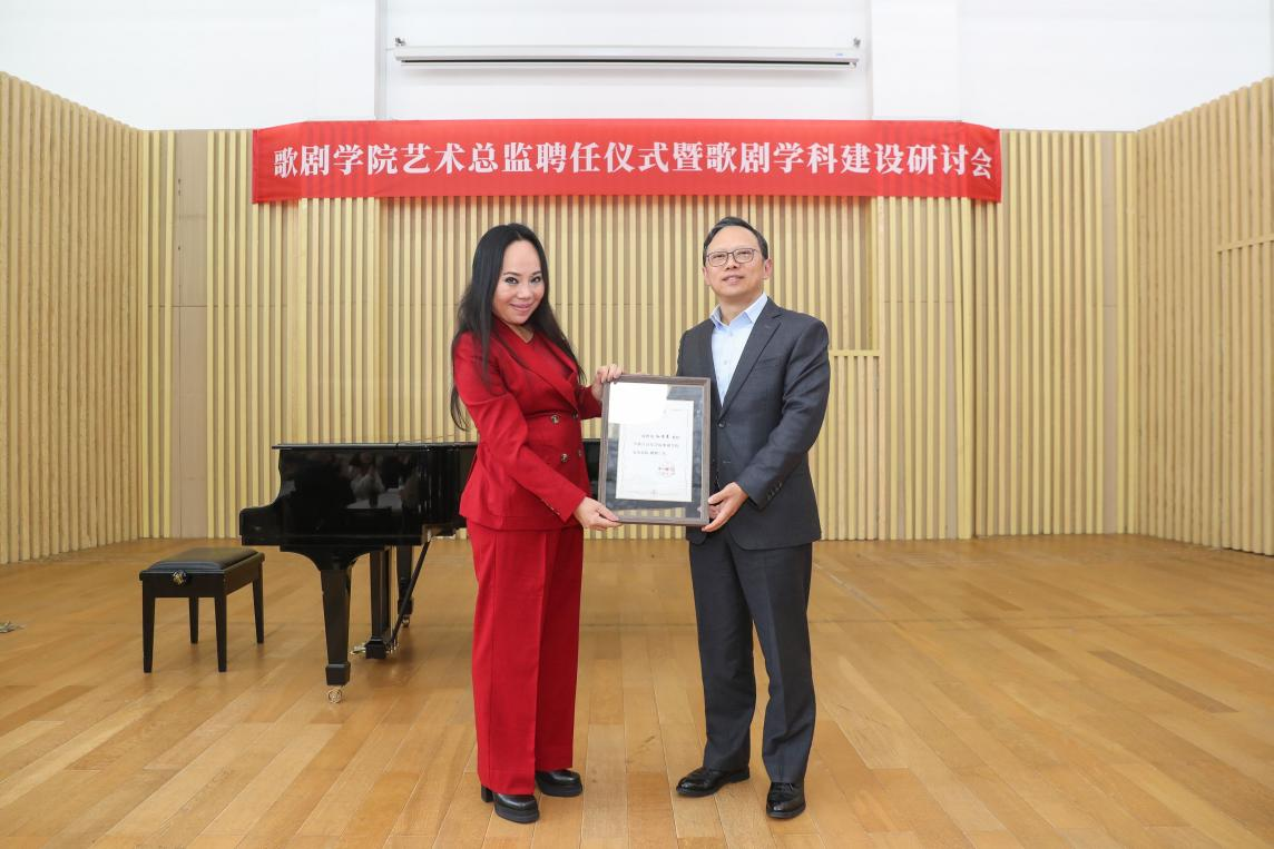 王瑞为著名女高音歌唱家孙秀苇教授颁发了歌剧学院艺术总监聘书