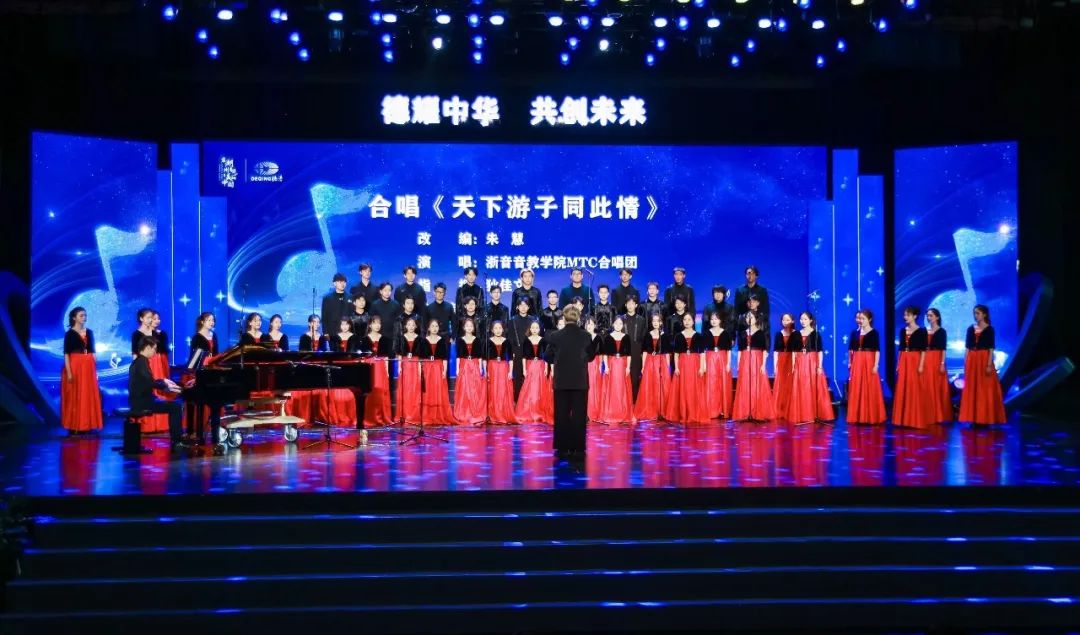 仪式上,学校音乐教育学院MTC合唱团演绎了由作曲与指挥系教师朱慧改编的德清游子文化节合唱主题曲《天下游子同此情》。随后,举行了学校钢琴系青年教师专场音乐会,青年教师周宁、黄翔、朱昊、陈小雨、孙钧、魏芸、吴君麟演奏了肖邦、李斯特、德彪西、舒曼、储望华等中外艺术名家的经典作品。