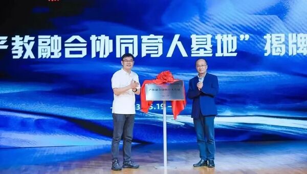 学院党委委员、宣传部部长李俊和顾德峻共同为校企“产教融合协同育人基地”揭牌。