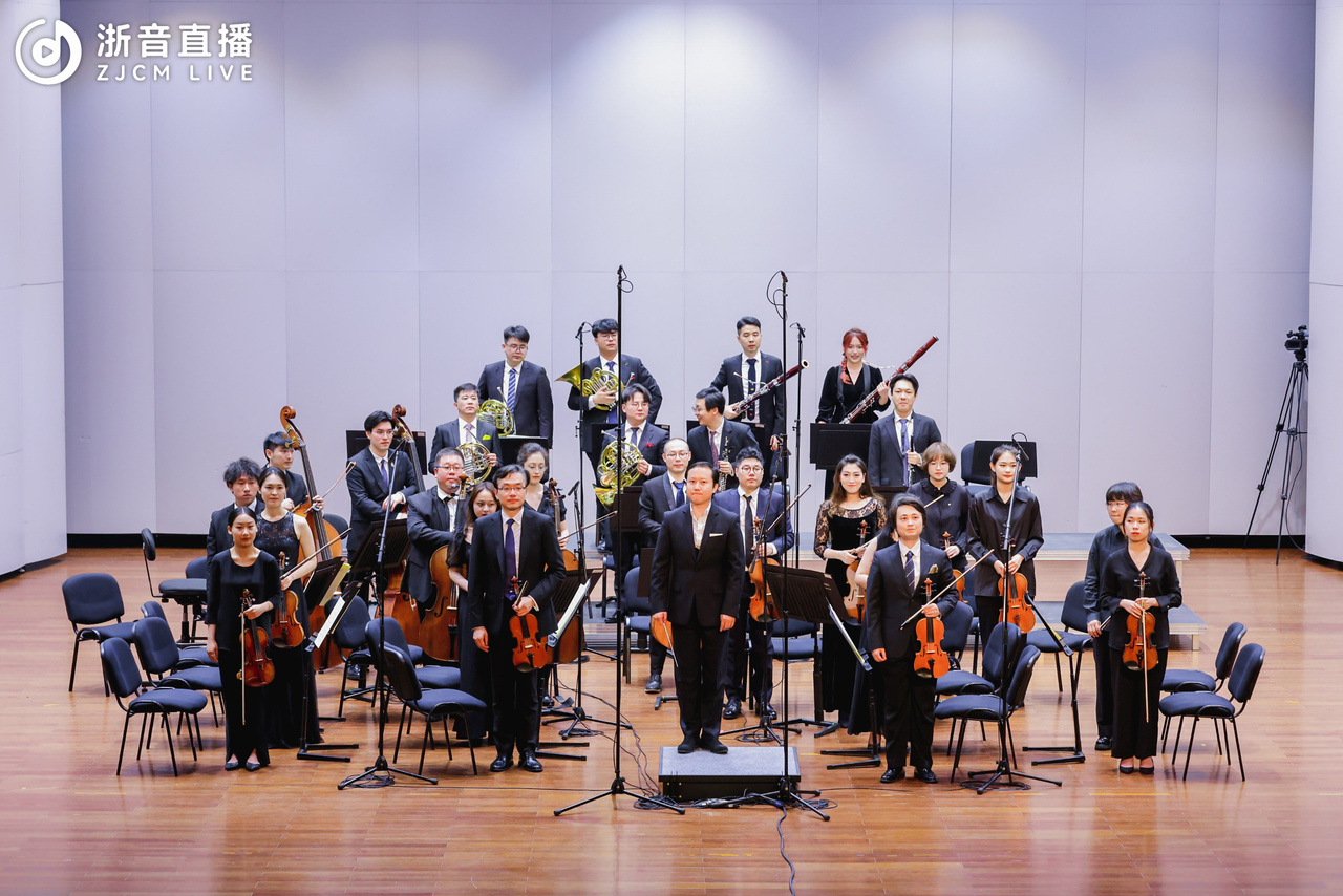 音乐会下半场由学院室内管弦乐团带来罗西尼歌剧《布鲁斯基诺先生》序曲以及莫扎特《g小调第二十五交响曲》(KV.183)。室内管弦乐团是一支隶属于学院的高水平职业乐团,也是中国第一支以室内乐为建制的职业管弦乐团。乐团特邀旅德指挥家焦阳担任艺术总监,乐团成员也由来自于国内外的优秀音乐家、独奏家组成,他们以精湛的演奏技巧共同追求着精致而富有活力的管弦齐鸣。乐团首先演绎了《布鲁基诺先生》序曲,瞬间点燃了下半场的情绪。作品的演奏摒弃了传统意大利式的粉饰风格,以趣味盎然的思维,诠释着人们在现实中时而窘迫失控、时而欢乐热闹的生活面貌。接下来是本场音乐会的最后一曲、莫扎特的经典之作《g小调第二十五交响曲》。g小调的旋律洋溢着一种忧伤的气息,尽管偶尔的抒情段落令人感到片刻的轻松,但稍纵即逝,无疑是对莫扎特的永恒解读与纪念,同时也是对经典的回望与致敬。曲毕,闭幕式音乐会在欢呼与雀跃声中圆满落幕。