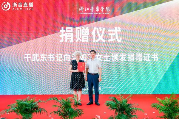 干武东书记向洪如丁女士颁发捐赠证书。
