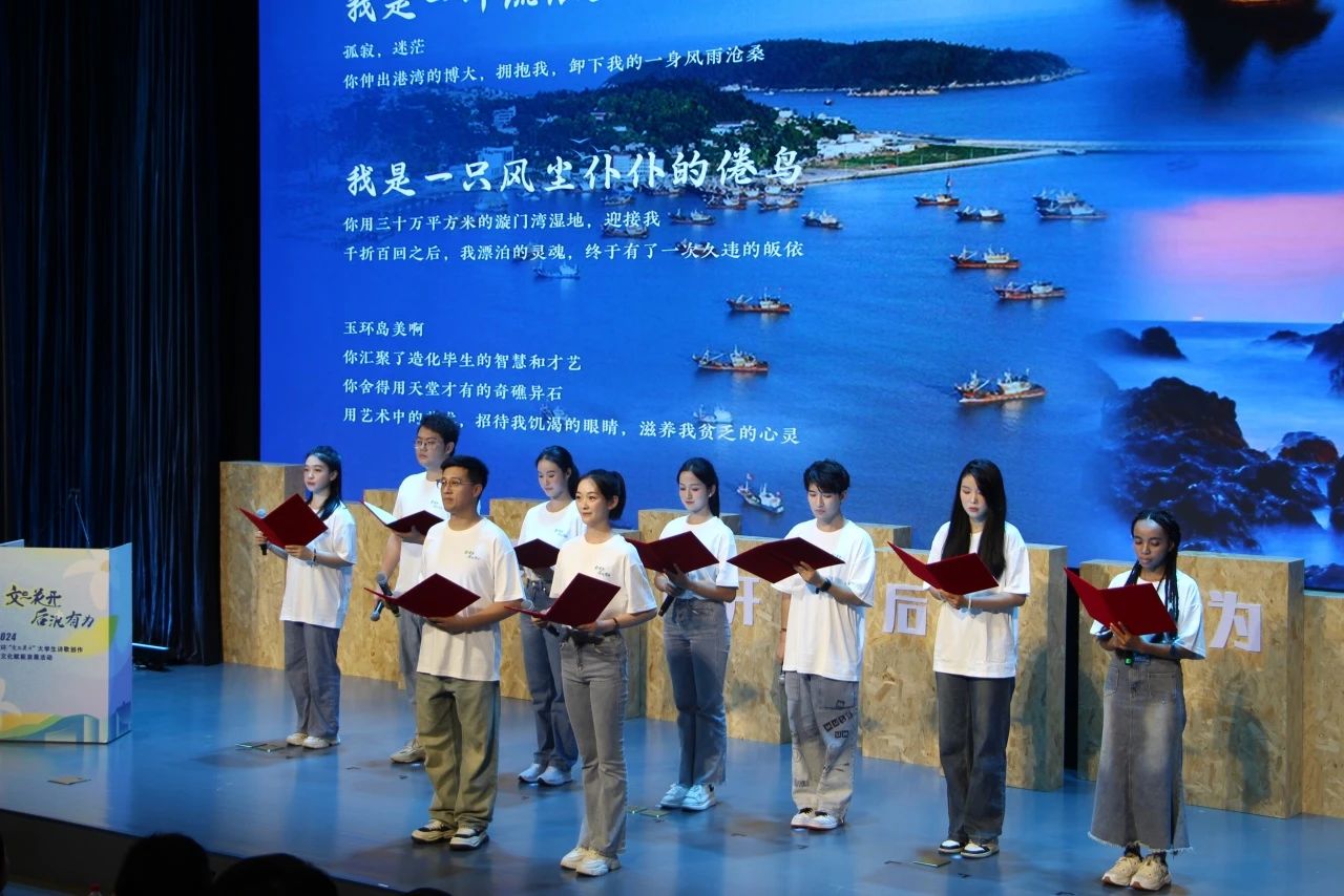 从细腻的剪纸艺术中,他们学会了如何将简单的纸张裁剪成栩栩如生的图案;在布画创作过程中,色彩与布料的巧妙结合,让每一幅作品都蕴含着独特的情感与故事;而蓝晒工艺则以其独特的色彩变化,让师生们领略到了化学与美学交融的奇妙;在“文旦花开”活动中,他们参与主题为“玉环,福地东海的精美封面”主题诗歌朗诵,为在场的观众深情地讲述了玉环的自然与人文。