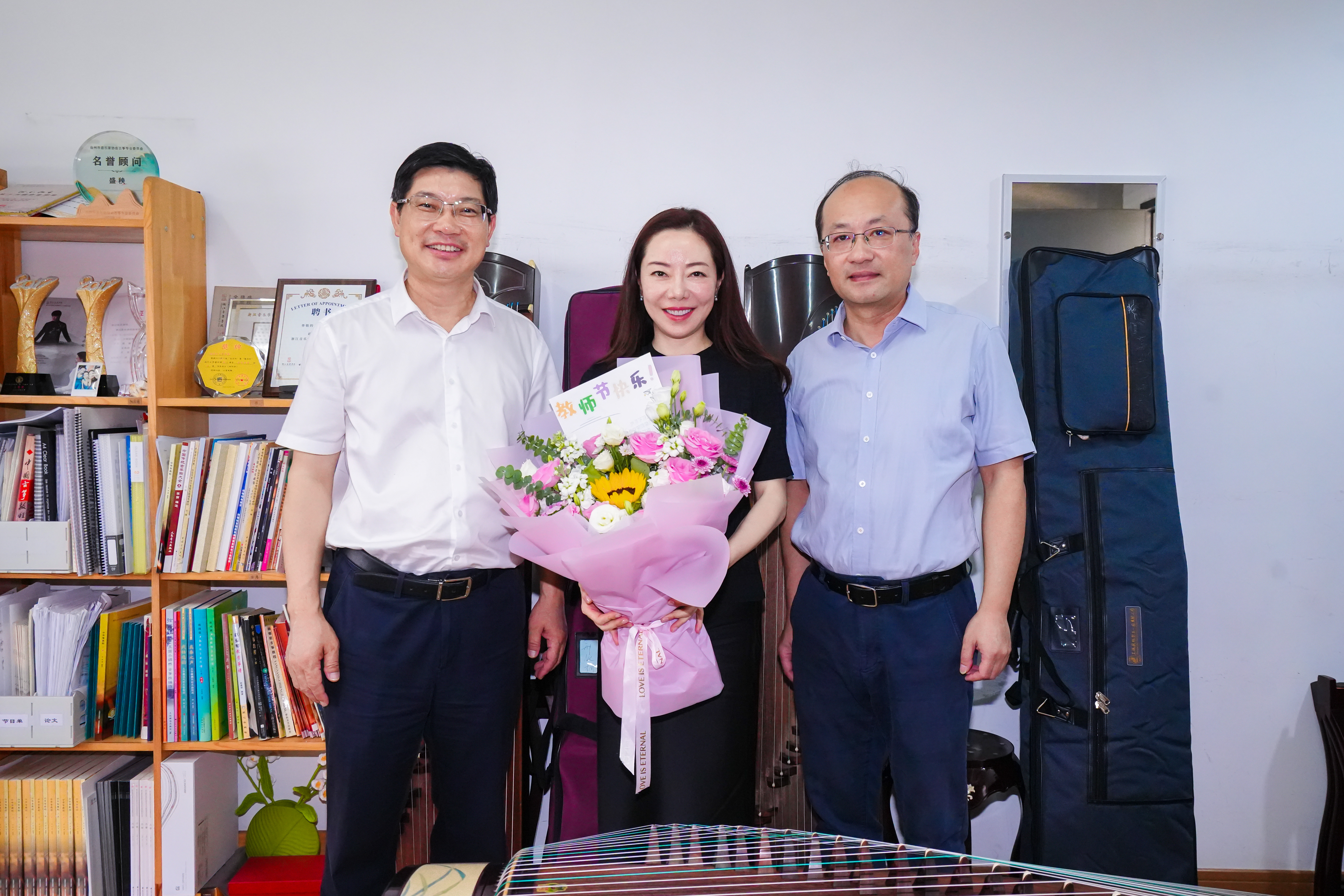 随后,干武东围绕“大力弘扬教育家精神,加快建设教育强国”的教师节主题和刚出台的《关于弘扬教育家精神加强新时代高素质专业化教师队伍建设的意见》,对全校教师提出三点希望:一是修大德,始终牢记“立德树人”的根本任务。要牢固树立“为党育人、为国育才”的使命,做到率先垂范,明大德、守公德、严私德,同时还要将“立德”要求贯彻到教育工作的方方面面和全部过程,发挥思政课程的作用、持续加强师德师风建设,确保真正做到以文化人、以德育人,不断提高学生思想水平、政治觉悟、道德品质、文化素养。二是怀大爱,自觉践行“铸魂强师”的理想信念。要做教育家精神的传承者、做教育家精神的践行者、做教育家精神的引领者,积极将教育家精神融入到日常教学实践和科研活动中。三是成大师,始终坚守“学无止境”的终身追求。教师要树立终身学习的崇高理念,肩负起传道、授业、解惑的神圣职责,做高质量发展的建设者、开拓者和传播者,积极投身于“高水平一流音乐学院”建设的伟大实践。“执一业而终老,磨一剑以千秋”,希望教师在培养德智体美劳全面发展的社会主义建设者和接班人的道路上,继续书写更加辉煌的篇章。