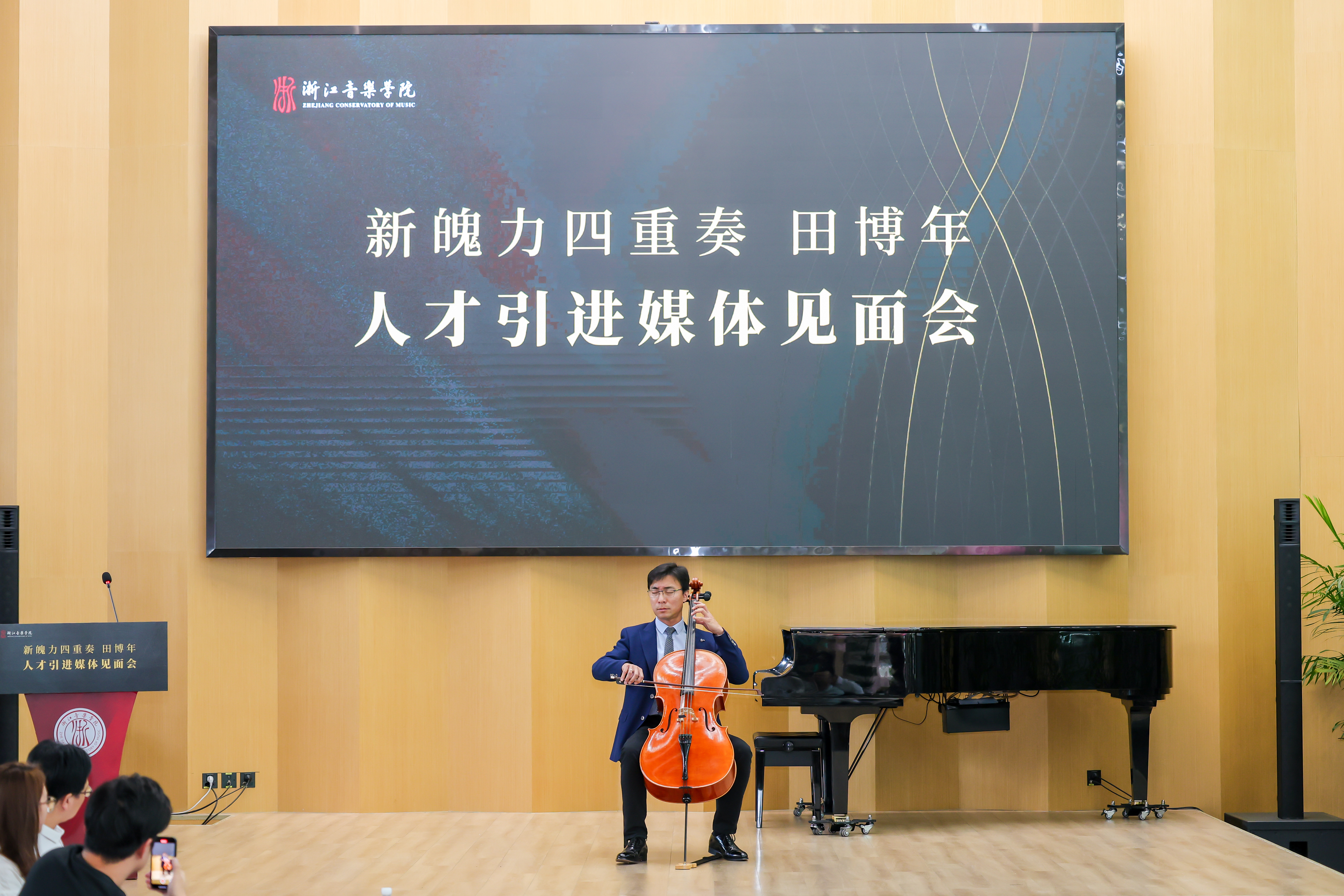 田博年是活跃于当今国际乐坛的著名华人大提琴演奏家,德国科隆爱乐乐团及科隆国家歌剧院终身大提琴首席,也是中国首位同时任教于德国、奥地利两国音乐学院的大提琴教授。2002年获得第四届柴可夫斯基国际青少年大提琴比赛金奖,实现中国大提琴家在重要国际比赛中金奖零的突破。他高度赞誉了浙音在8年间取得的丰硕成果。他表示,浙音是他见过最美、最具幸福感的艺术院校。在这里,他深刻体会到学校对艺术家的尊重与关心,感受到浙音真诚热情地向国内外艺术家敞开大门。在学校创新人才政策的引领下,许多海内外艺术家带着不同国家的音乐印迹齐聚、碰撞、交流,共同缔造了音乐的“联合国”。他非常期待与这些优秀的艺术家团队一起工作,把更多国际资源引入校园,也让世界听到来自浙音的美妙声音。