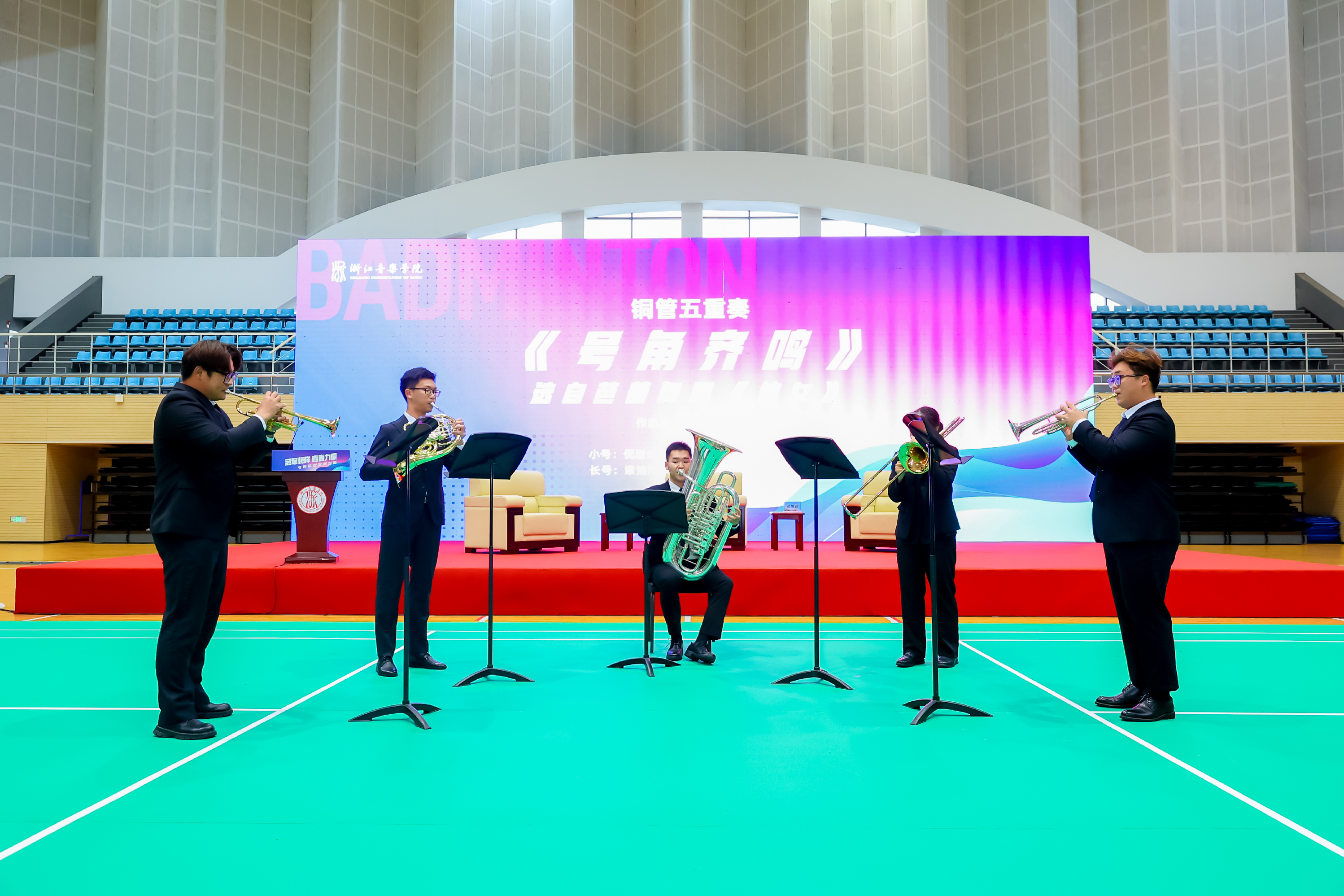 竞技赛场,音乐是心灵的鼓点,赋予勇者无尽的力量。管弦系学生们以曲目《号角》开场,用激昂旋律燃起拼搏的火焰,迎接冠军们的莅临。