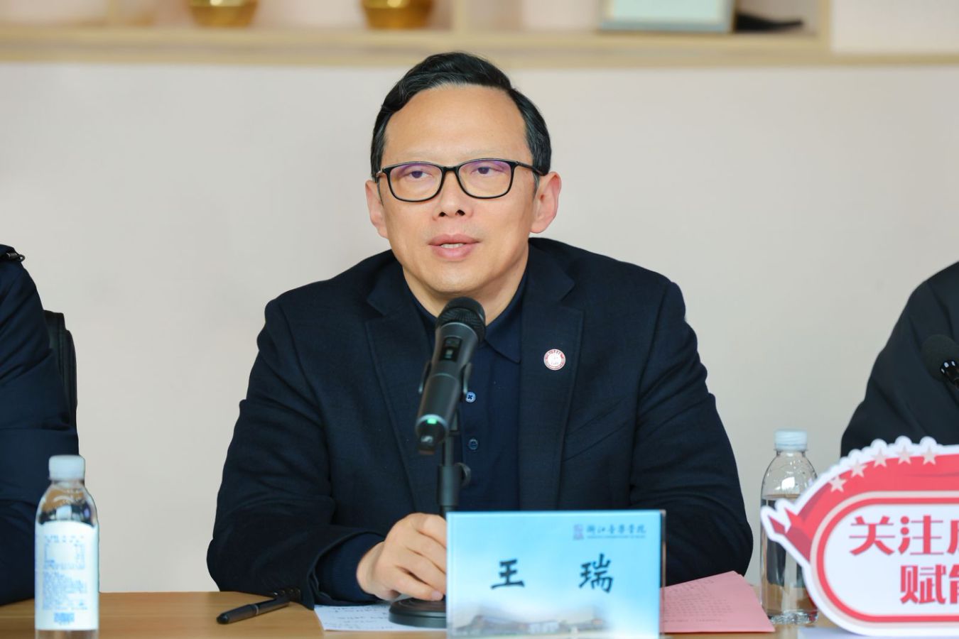 面对未来的艺术从业者们,王瑞与同学们分享了自己对音乐艺术的理解:他回顾了音乐始终伴随人类发展的漫长历史,指出音乐是一种超语言的文化形态,能够更加精准丰富地表达人类情感,并指出,无论AI时代如何发展,艺术的创意、以及音乐带给人类的心灵支撑是不可取代的。他向同学们提出了三点希望:一是要坚定艺术信仰、艺术自信,为自己所从事的职业感到荣光;二是要追求真善美的艺术精神,让艺术作品扎根人民;三是要赋予自身浙音品格,秉持浙音开放创新的理念,保持“逢山开路、遇水搭桥”的闯劲,将创新精神内化为行为习惯。最后他鼓励同学们励学敦行,在艺术事业发展的路途上不断进取,为中国音乐艺术的发展做出贡献。