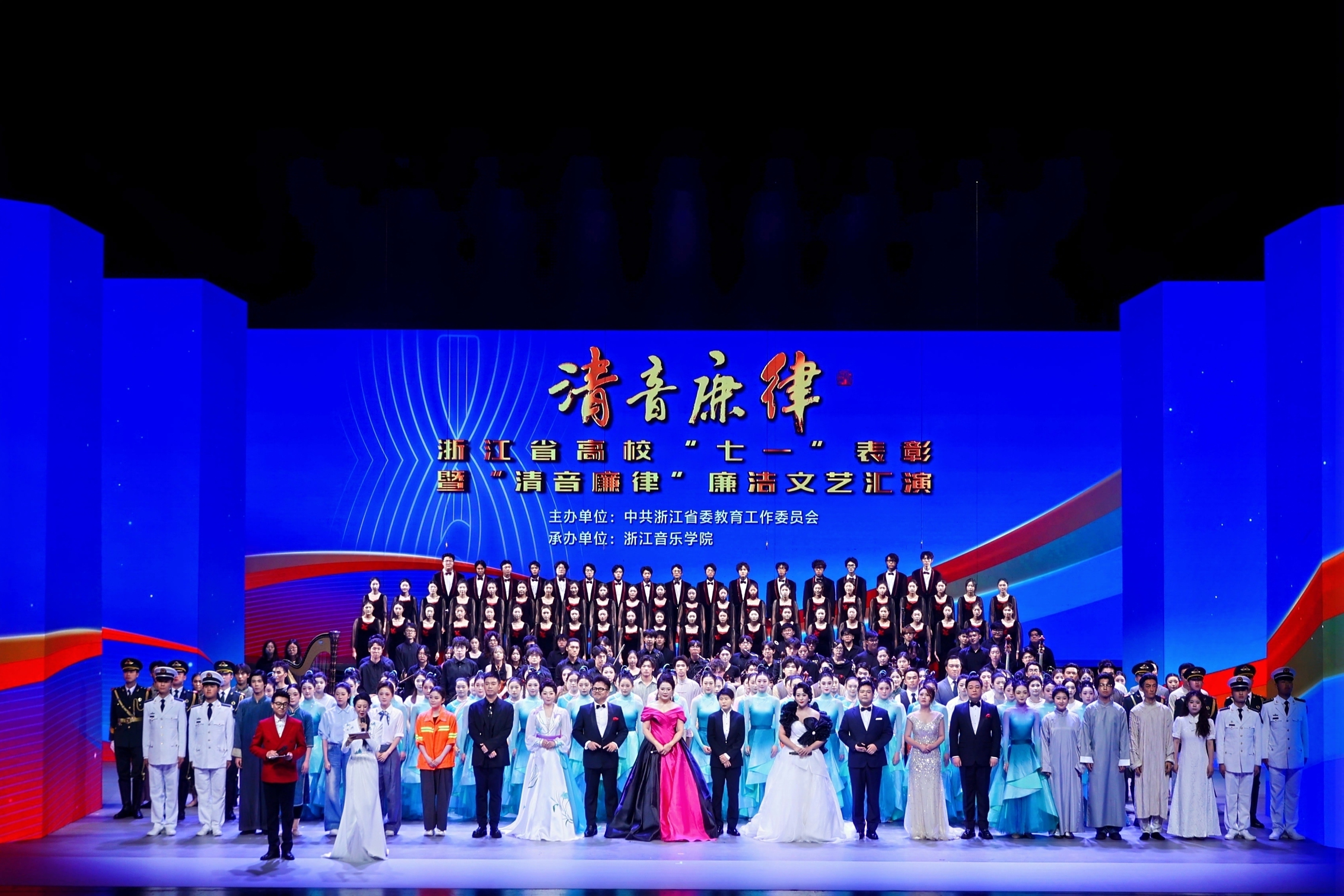“清音廉律”品牌于2018年开始打造,立足“清廉浙音”建设,旨在以艺术笔触深情勾勒校园风清气正的良好精神面貌,已成为浙江省颇具影响力的廉洁文化品牌。本届“清音廉律”廉洁文艺汇演在中共浙江省委教育工作委员会的统筹下,汇聚整合全省高校力量,以形式多样、主题鲜明的文艺节目,鲜活展现了“清廉教育”的生动实践,使广大师生充分感受清廉文化的独特魅力,聆听时代清风的和谐乐章。