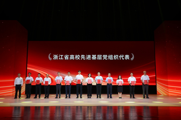 王钢为浙江省高校先进基层党组织代表颁发证书。
