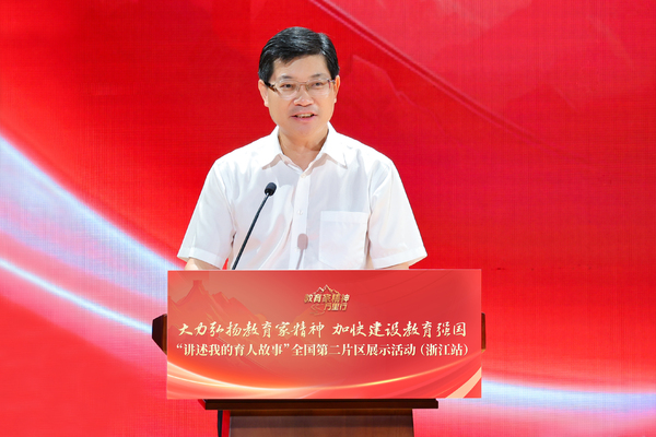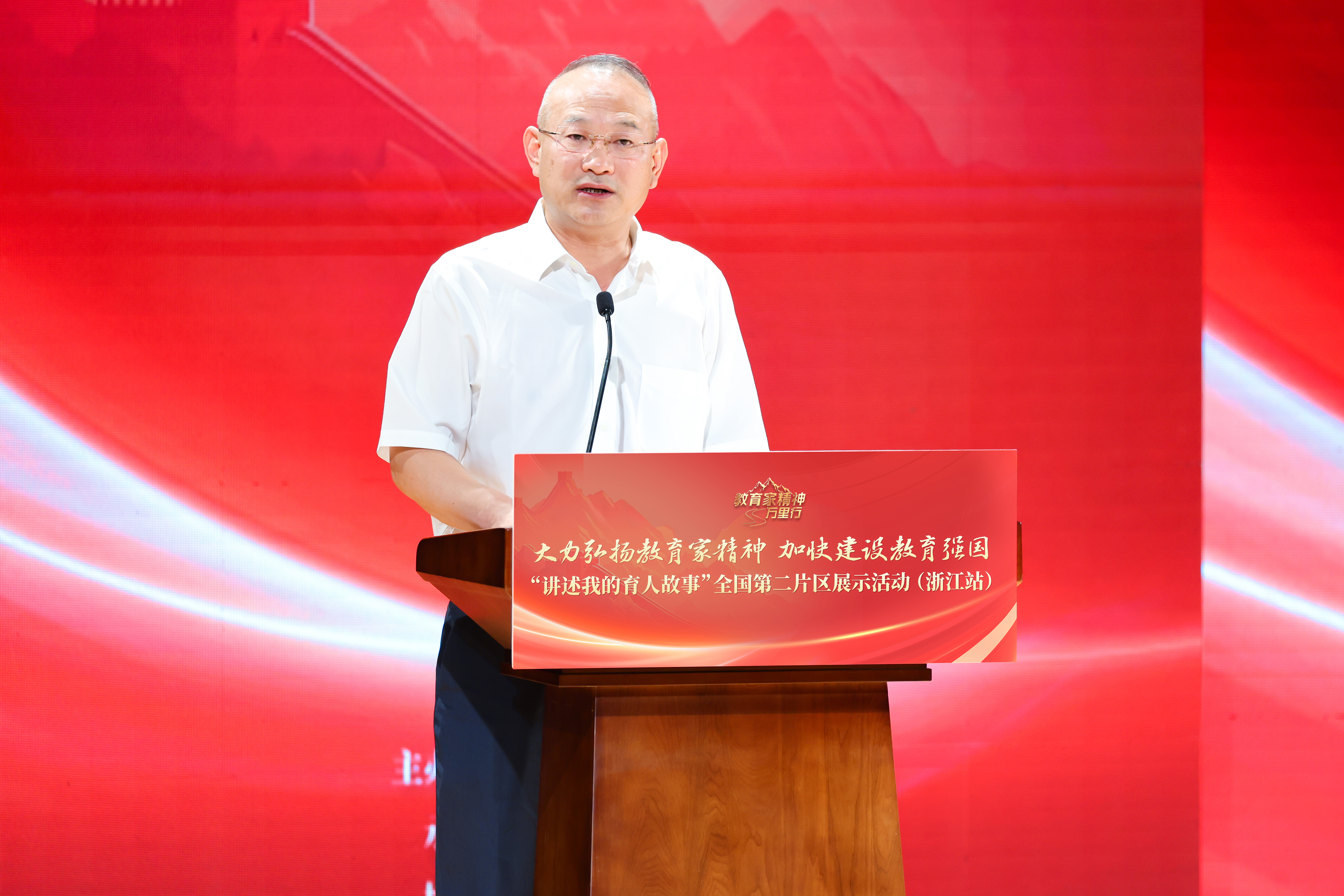 舒培冬在致辞中表示,在奋力推进高质量发展建设共同富裕示范区大背景下,浙江以打造“浙里优学”金名片为主线,全面实施教育现代化战略和高等教育强省战略。今天的西湖之约,是七省市教育智慧的双向奔赴,希望21位讲述人用 “沾泥土、带露珠、冒热气” 的故事,传递“育人不是孤勇者的跋涉,而是一群人的星火燎原”,让本次活动成为教育家精神传播的 “加油站”、省市教育协作的 “连心桥”。浙江也将以此次活动为契机,深入打造弘扬教育家精神高地,努力建设一支高素质专业化教师队伍,让更多 “大先生” 的身影出现在教育强国的征程上。