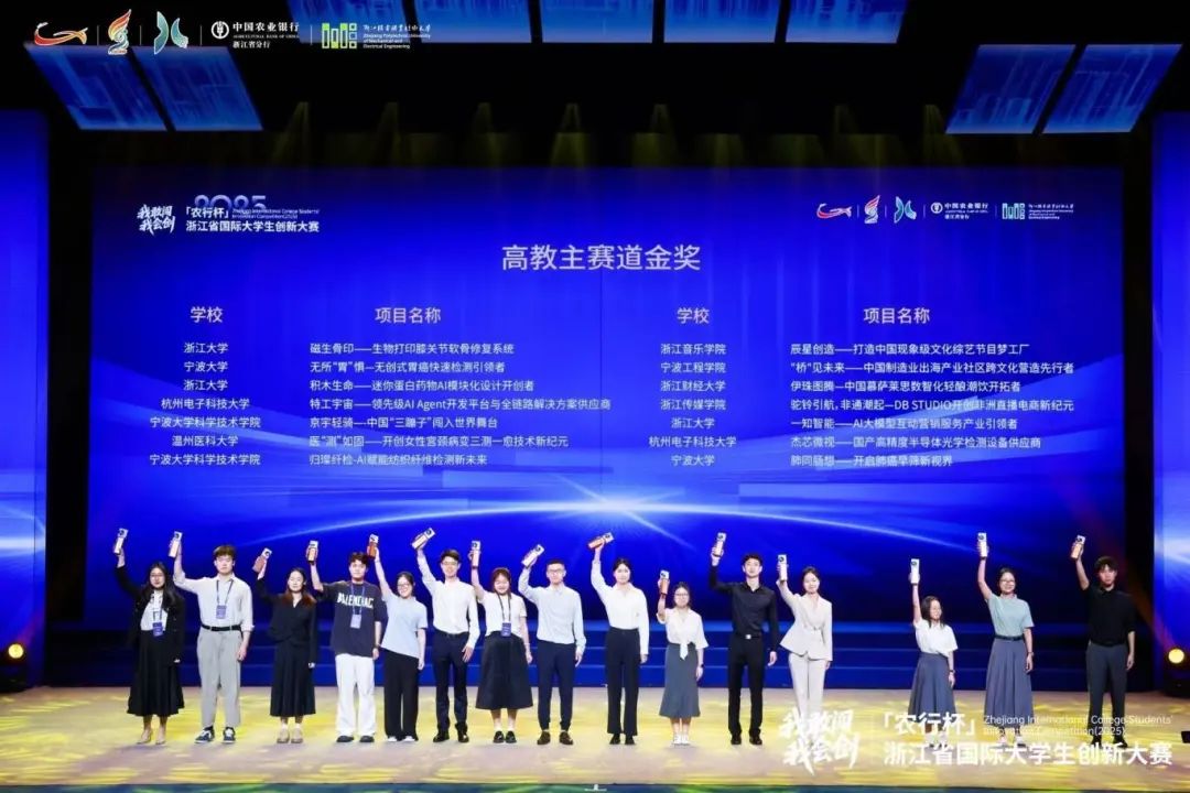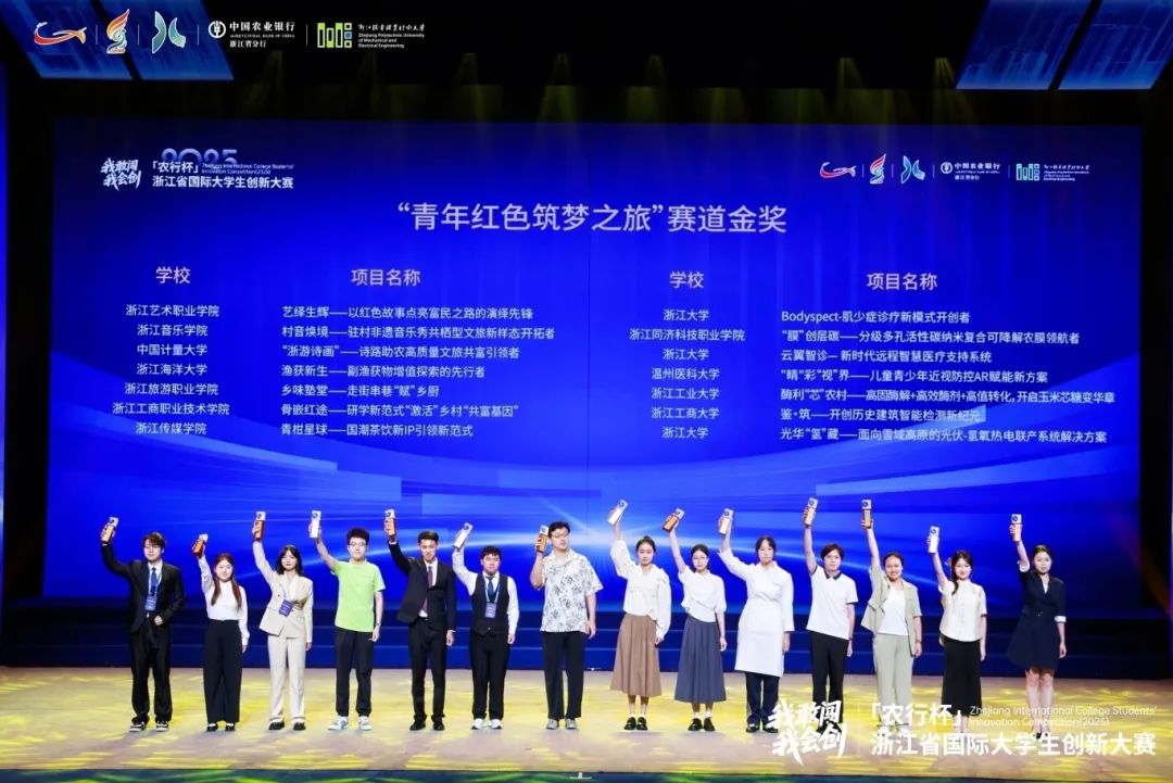 青春征途,一路敢闯会创。在近日落幕的浙江省国际大学生创新大赛(2025)中,学院喜获金奖5项、银奖3项,金奖数和获奖总数均获历史新高。