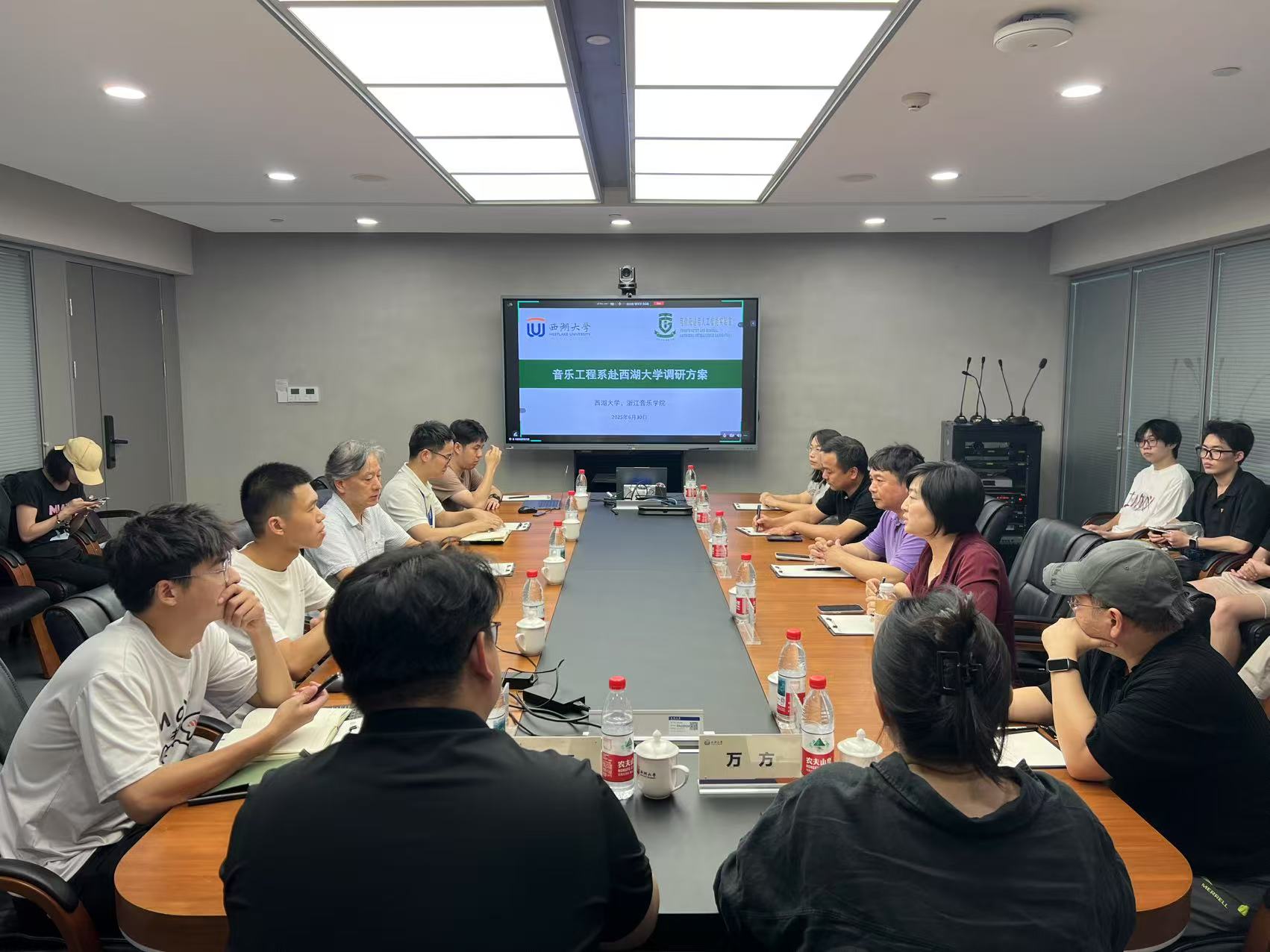 “艺术与科技的发展从来不是并行的两条路线,而是交流与交融……”这是音乐工程系“文艺轻骑兵”走进通用人工智能实验室,近距离感受机器人指挥的独特魅力后的感悟。他们围绕“音乐AI大模型”、跨模态学习、人机交互等前沿课题展开讨论,探索其在音乐创作与演出中的落地可能。这场关于科研项目的“深度对话”擦出了耀眼的火花,音乐工程系师生提出了音乐领域具体技术难题,为西湖大学的AI研究提供了极具价值的应用场景和挑战;西湖大学的前沿技术也为解决浙音科研项目中的瓶颈提供了新的思路。在实验室与舞台之间,一条双向畅通的通道正在延展……