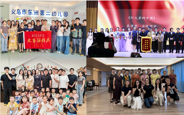 除此外,各系“文艺轻骑兵”们还在台州、宁波、丽水等地相继开展基层文化赋能活动。这些合作跨越多个文化场域,让校地共建的文化服务精准触达更多群体,真正做到和“群”而歌,为“众”谐声。