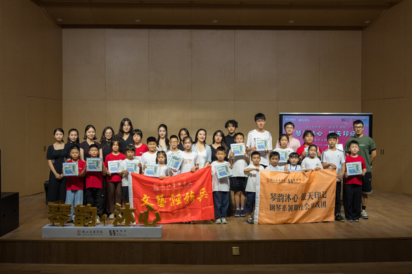 这不是走马观花的假期打卡,而是高校与企业的双向奔赴。钢琴系与银泰集团再度携手,在第十一届“银天书院”暑期夏令营中,“琴韵沐心・银天印记”团队以共创者姿态,在夏日舞台上奏响惠民新乐章。他们通过“两周教学+一日研学+美育实践音乐会”的模式,在琴键间播撒旋律的火种,将艺术的种子深植孩童心田。