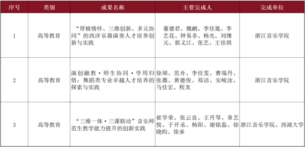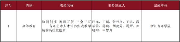 浙江省教学成果奖不仅是对教师教学实践与研究水平的高度认可,更是衡量高校教育教学质量的重要标志。长期以来,学院始终以推动专业音乐教育高质量发展为核心,将教学改革作为提升办学实力的战略抓手,在专业音乐院校人才培养领域持续探索创新。通过构建“政策引导-平台支撑-成果转化”的闭环机制,为教师开展教学研究与创新实践提供了全链条支持,更聚焦专业音乐教育中的核心议题,如人才培养模式革新、课程体系重构、实践教学升级等,形成了一批具有行业引领性的改革成果。此次获奖是对学院过往教学改革成果的充分认可,更是学院持续深化专业音乐教育改革、服务国家艺术人才培养战略的新起点。