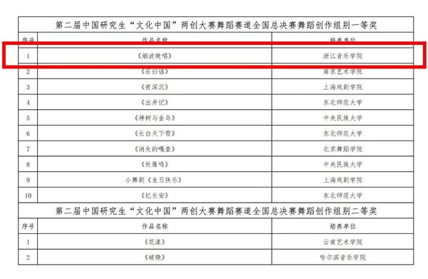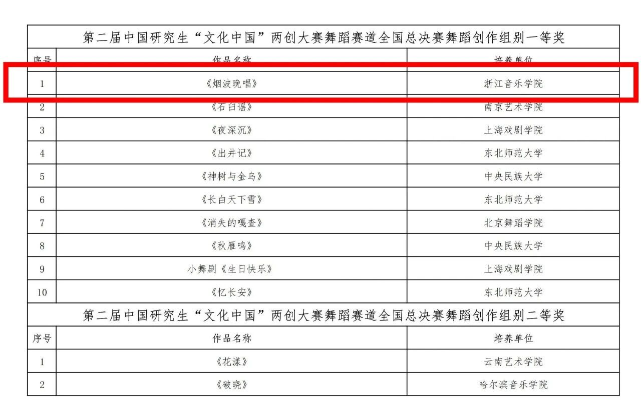 近日,由教育部学位管理与研究生教育司指导,中国学位与研究生教育学会和中国科协青少年科技中心联合主办,东北师范大学承办,全国艺术专业学位研究生教育指导委员会学术指导的第二届中国研究生“文化中国”两创大赛(舞蹈赛道)全国总决赛圆满落幕。本次大赛中,舞蹈学院2023级研究生周子敬创作编排的群舞作品《烟波晚唱》荣获舞蹈创作组一等奖。